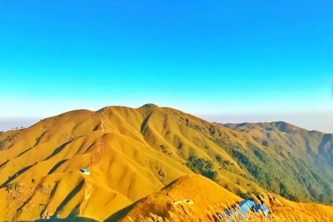 10:30-12:30 这个时间段沿着山脊行走,沿路漫山的金色草甸,十分迷人,会让你有一种置身梦幻的感觉。