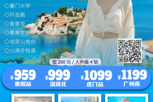 广州/虎门/深圳/惠州/前往厦门集合,正常动车出发时间上午09:30-10:30之间,以实际出票为准