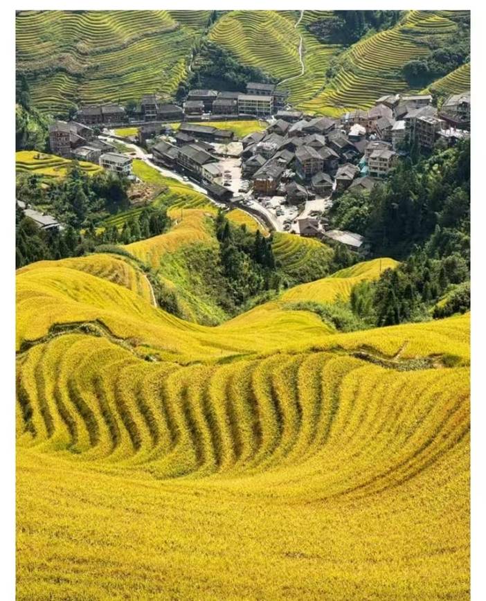 14: 00 出发平安寨,我们开始登顶最高观景台 “七星伴月”,观赏世界之最的龙脊梯田。座座山川、连绵的吊脚楼,构筑了龙脊山上一道美丽的风景线