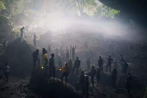 对“未知”领域、事物孜孜不倦的探索,有的岩洞洞口狭窄,仅可排成一列通过,洞内却藏有一番天地,光影倾泻,宛若神仙隐居之境。
