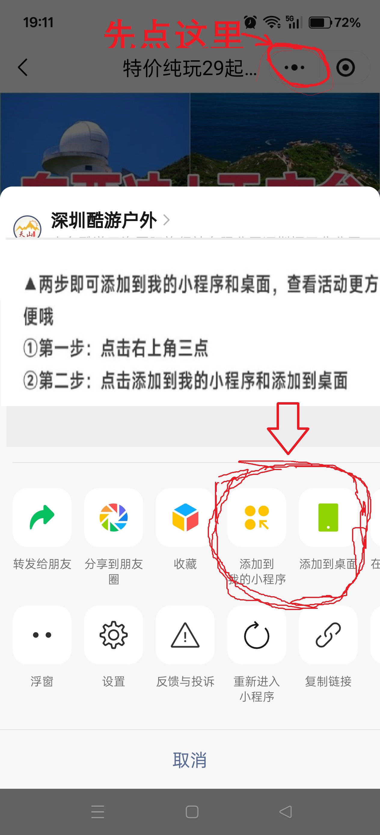 1、生成海报>保存到本地>海报图发朋友圈,必须配文案:一起出来玩吧#深圳天山户外。