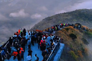 登上山顶瞭望,盐田港、大小梅沙、三洲田风景区尽收眼底;西北方向的横岗片区、东北方向的坪山城市群和西南方向的罗湖高楼静伫云雾中,蔚为壮观;南方香港西贡群山和海湾豁然呈现于眼前,海天一色,景色绝佳。