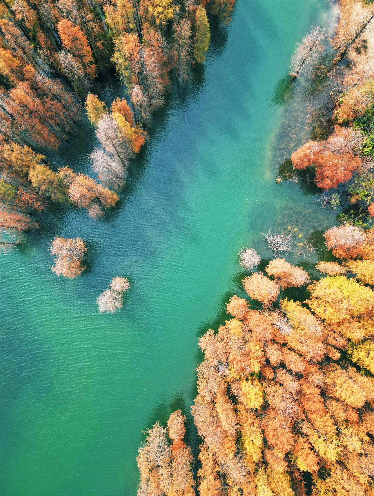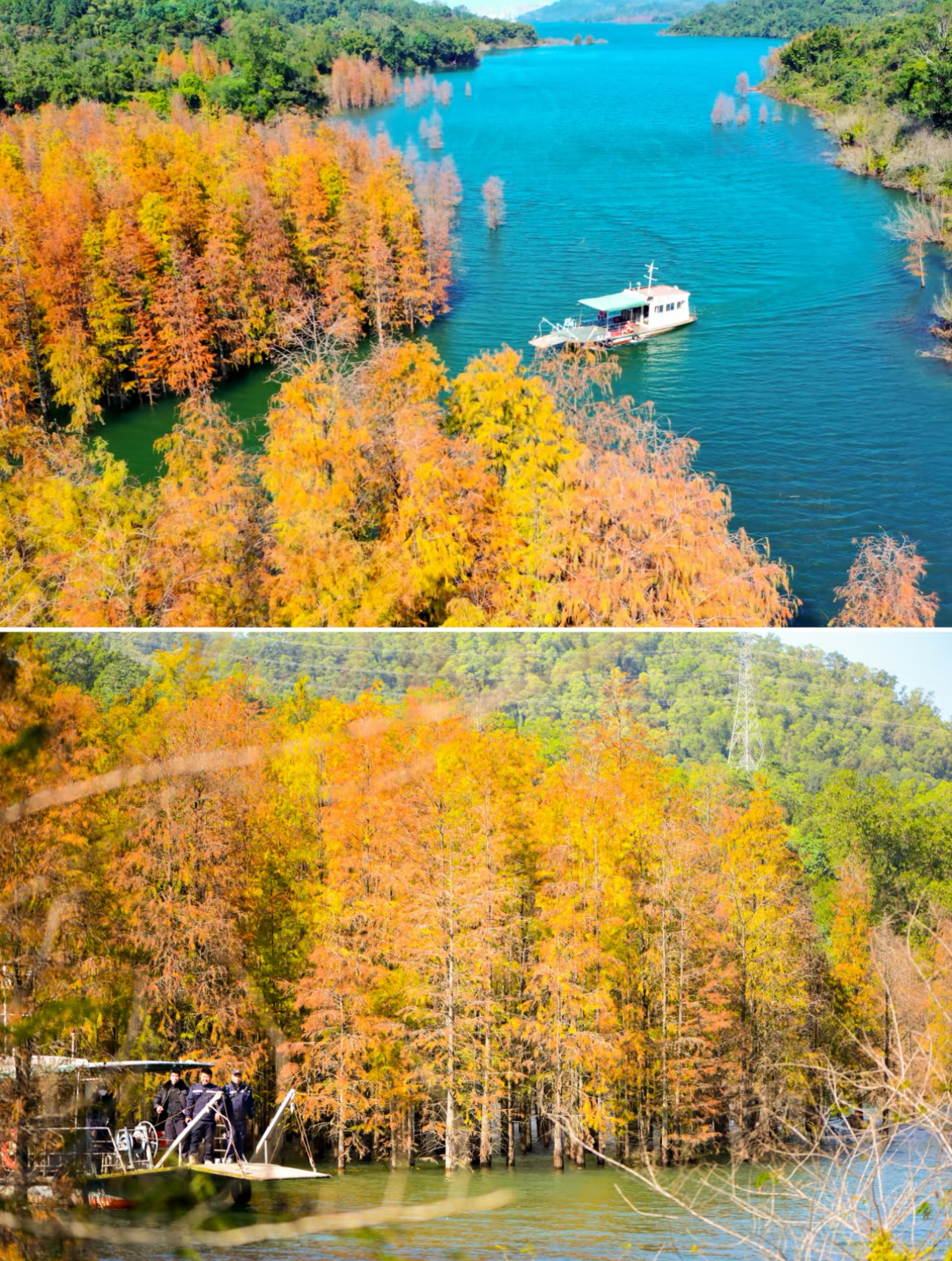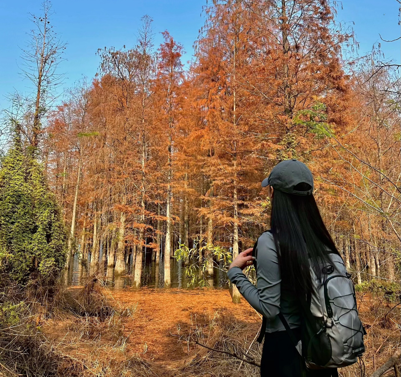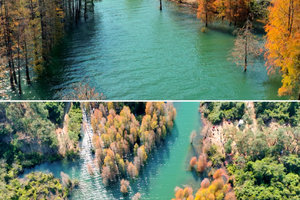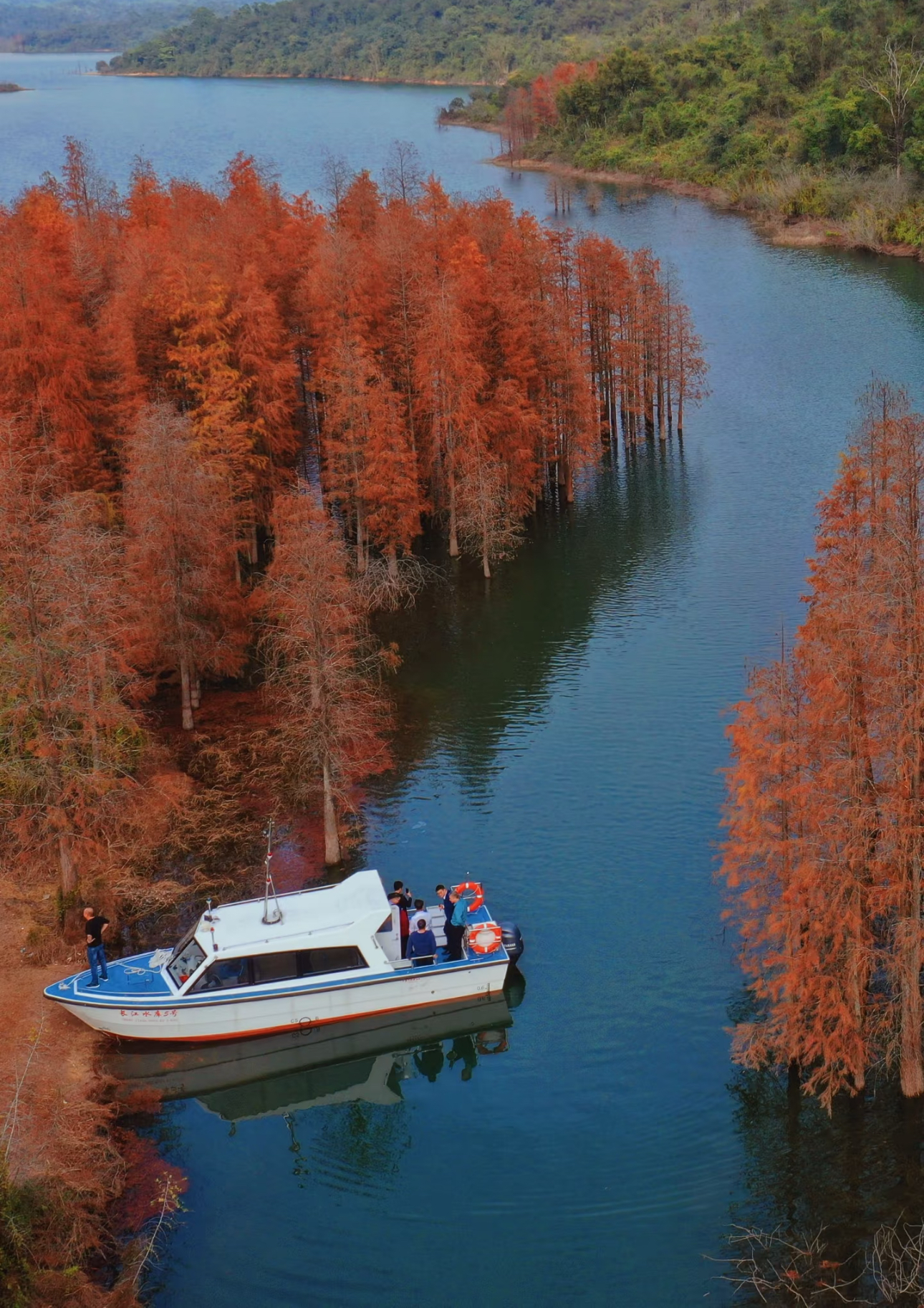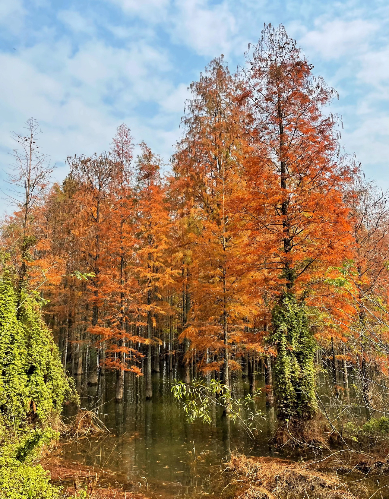 水杉倒影与水中,形成一幅唯美水墨丹青画