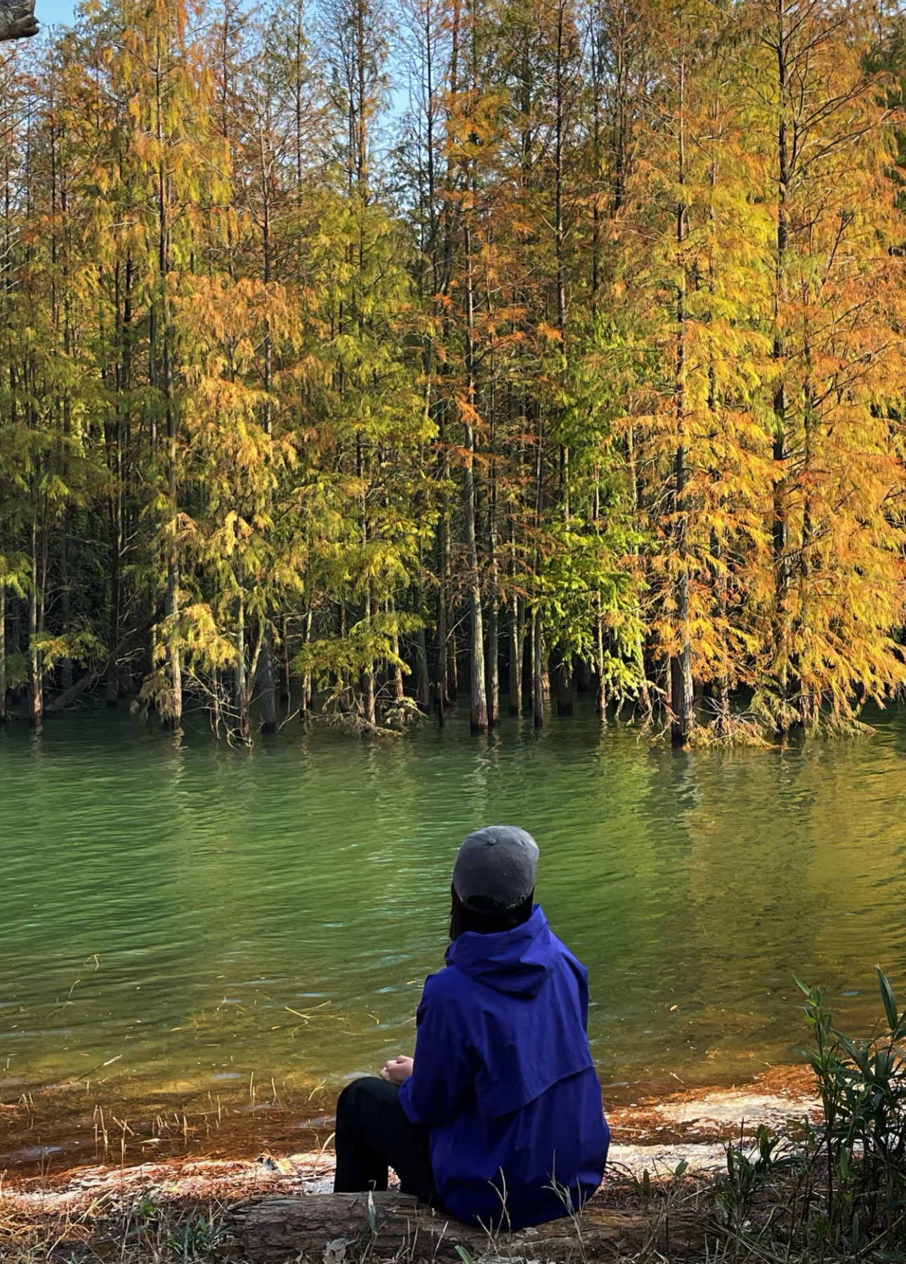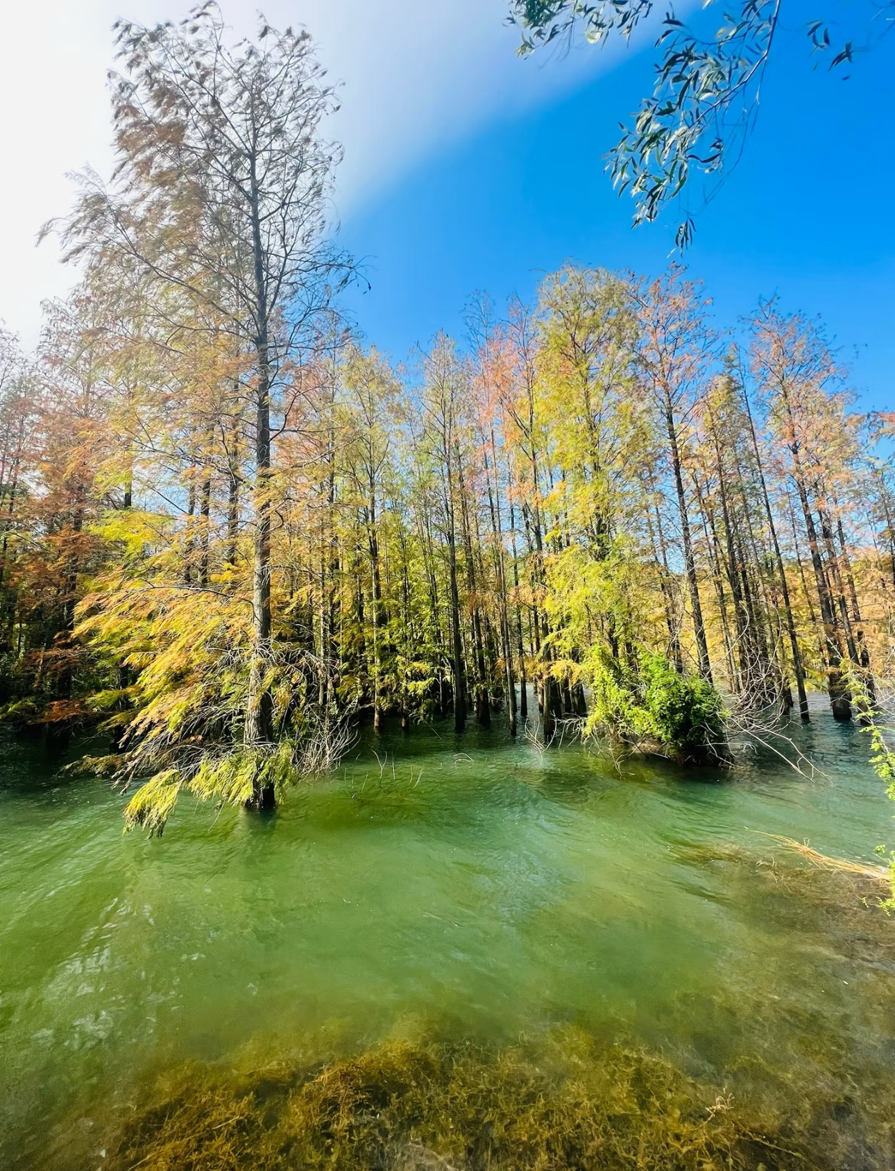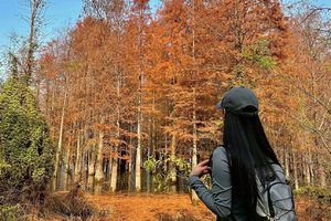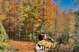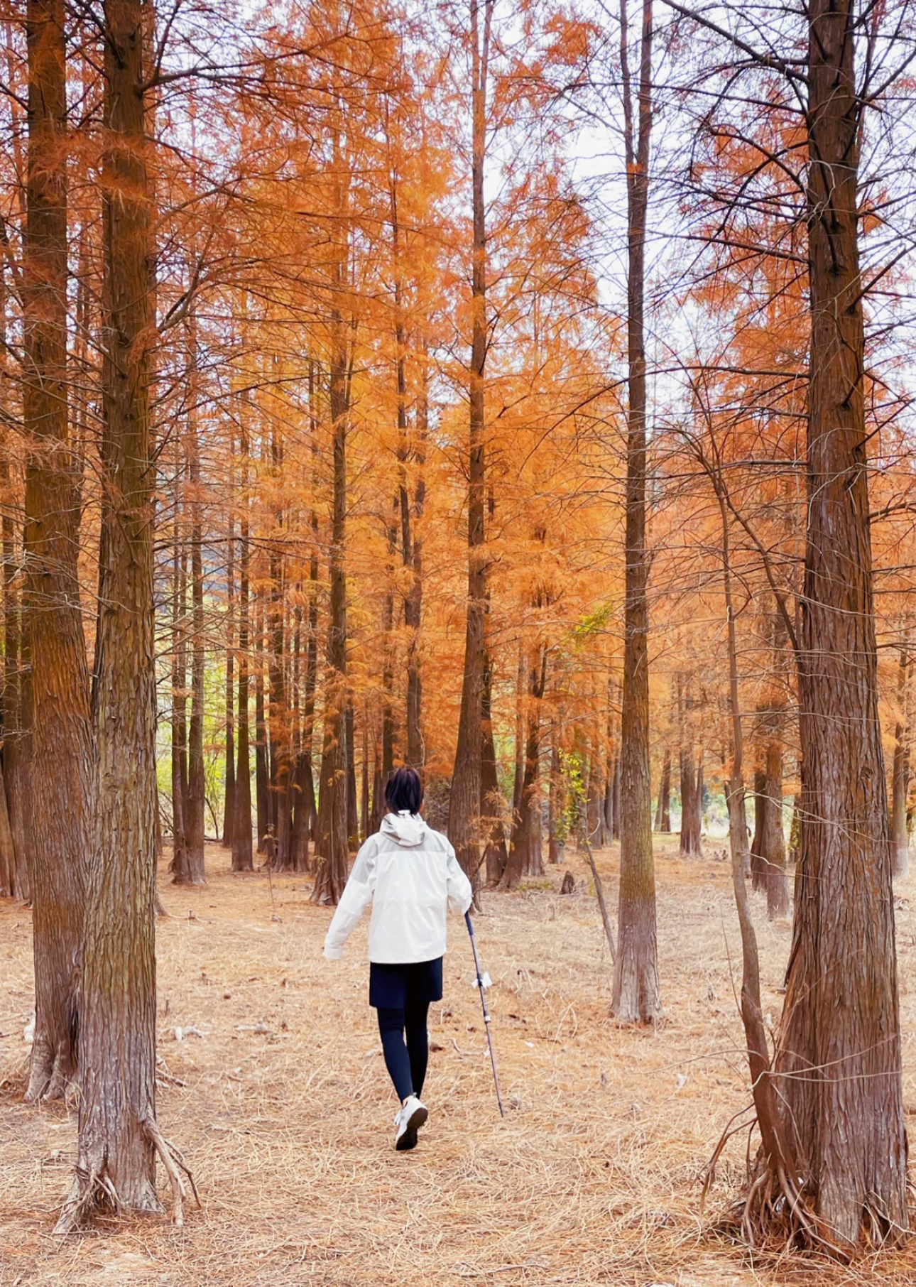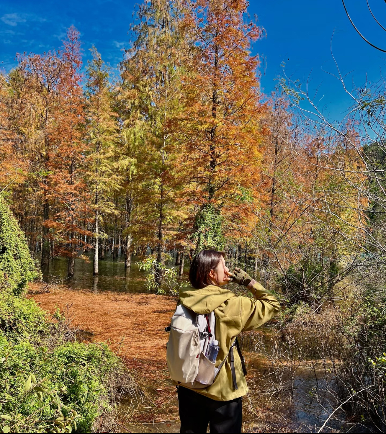 水杉倒影与水中,形成一幅唯美水墨丹青画