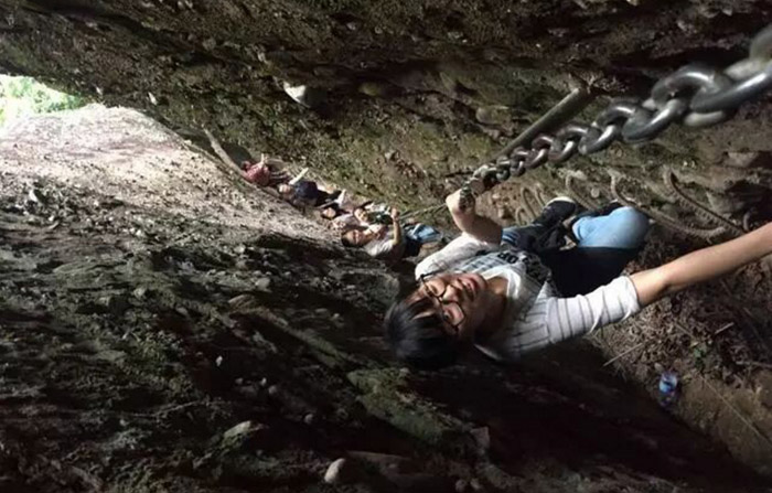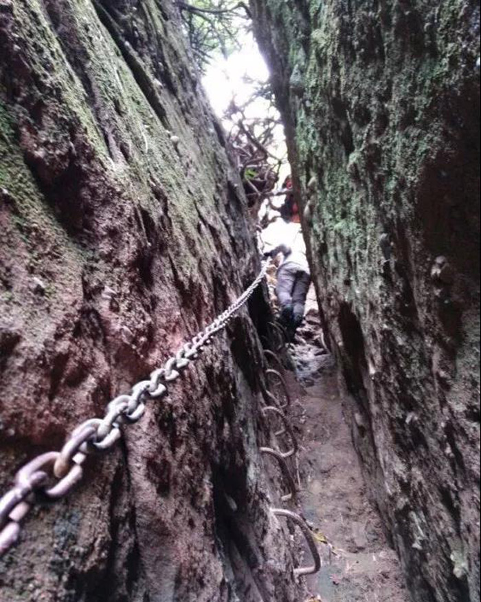 12:40 穿越一线天、攀爬铁锁链、观赏大自然的美景。