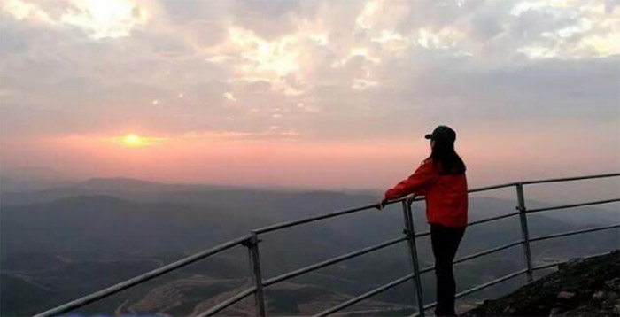 马鞍山还有“一线天”:在两块岩石之间有一裂缝,从中望天,只能看到一线的天空。石缝最窄处人都不能站立,置身其中,吹来的山风让“一线天”宛如空调房。马鞍山被越来越多知晓,到了周末可看到很多拿着相机登山的游客。