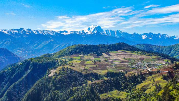 三江并流,涮走了烟云,带去了流沙,淘尽了污浊,孕育出如莲的美景。这里,少女的流盼梳理着花朵;阳光抚摸每一道生命的年轮;天鹅的翅膀将蓝天的白云剪成花环。