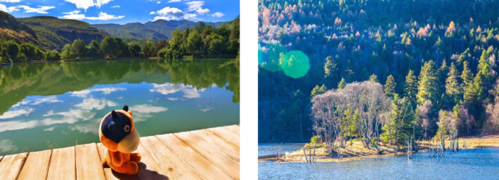 ►►游玩【属都湖】,沿着步行栈道围湖游览,湖水清澈得无边无际,湖水平静得像一面镜子,把蓝天白云映在了湖中,把高山圣湖映上了天空。这一刻,天堂在人间,人间似天堂。路途中还能遇到可爱的小松鼠,可以互动记录下美好的时刻。