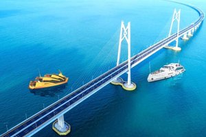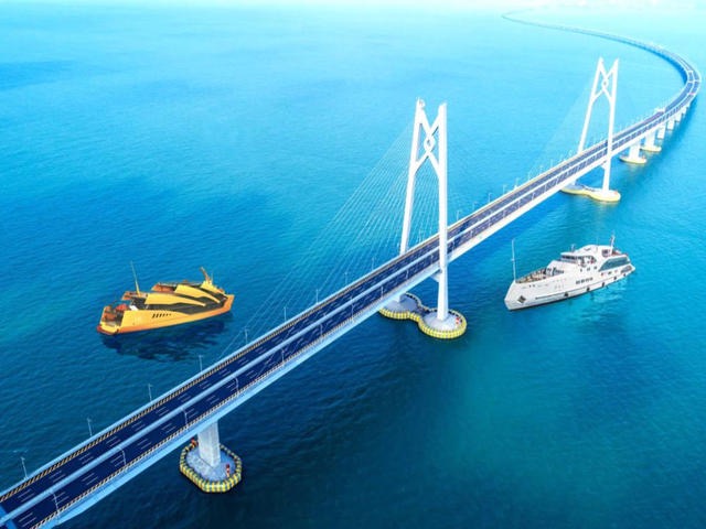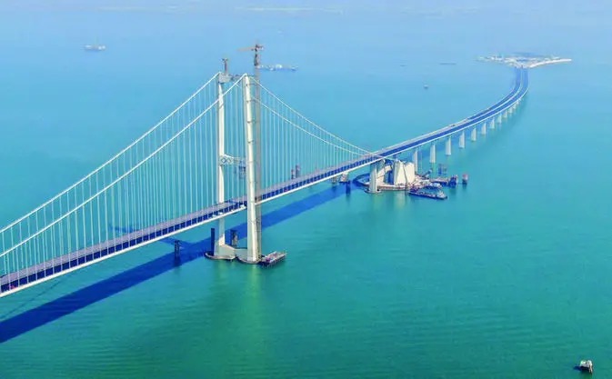 深中通道项目全长约 24 公里,其中桥梁工程长约 17 公里,用时8年建设的,采用设计速度 100 公里/小时的双向 8 车道高速公路技术标准,是国内首座采用钢壳混凝土组合结构建造的海底隧道,是集“桥、岛、隧、水下互通”为一体、当前世界上综合建设难度最高的跨海集群工程。是地处粤港澳大湾区核心区域的超级工程。