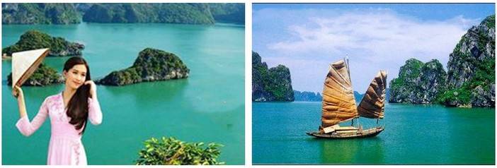 屹立在岸边的沙滩上,向远处望去,只见白茫茫的一片,海水和天空合为一体,分不清是水还是蓝天。看着大海,我们的心胸似乎变得开阔.在这种境界里,使人神清气爽,心旷神怡...下龙湾,1994年列入《世界遗产名录》。风景区共分为东、西、南3个小湾。因其景色酷似中国的桂林山水,因此被称为“海上桂林”。2011年被评为“世界新七大自然奇观”。