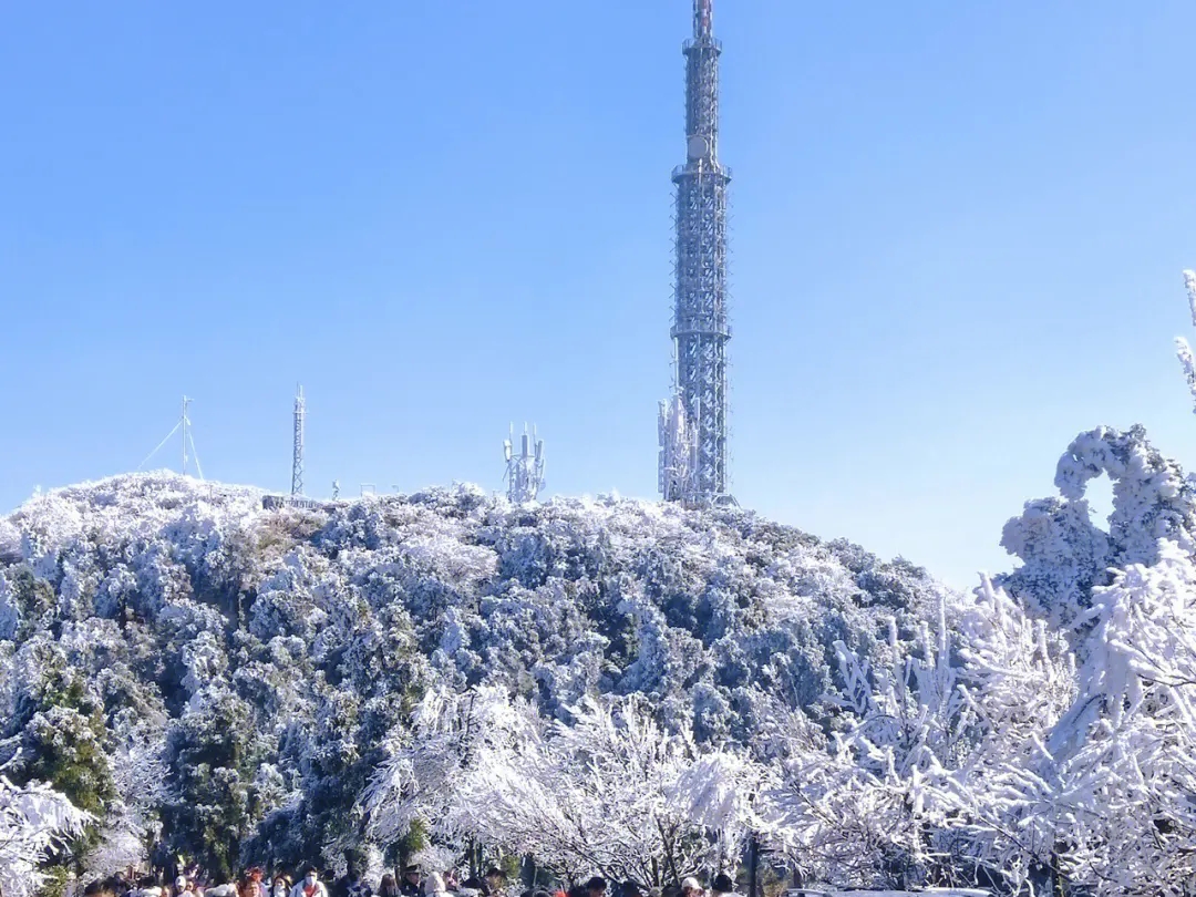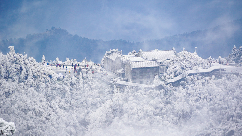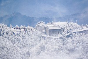 南岳衡山上的雾凇、冰柱蔚为奇观,千年祝融千年香火,在一片白雪皑皑中显得更加肃穆。