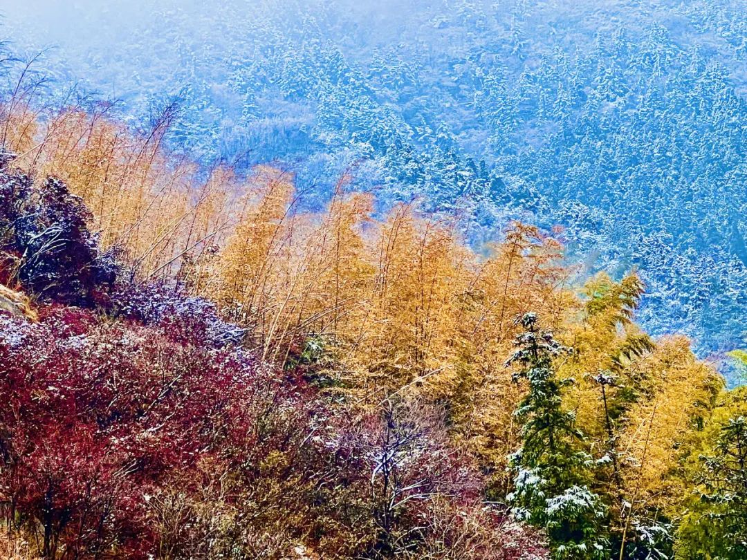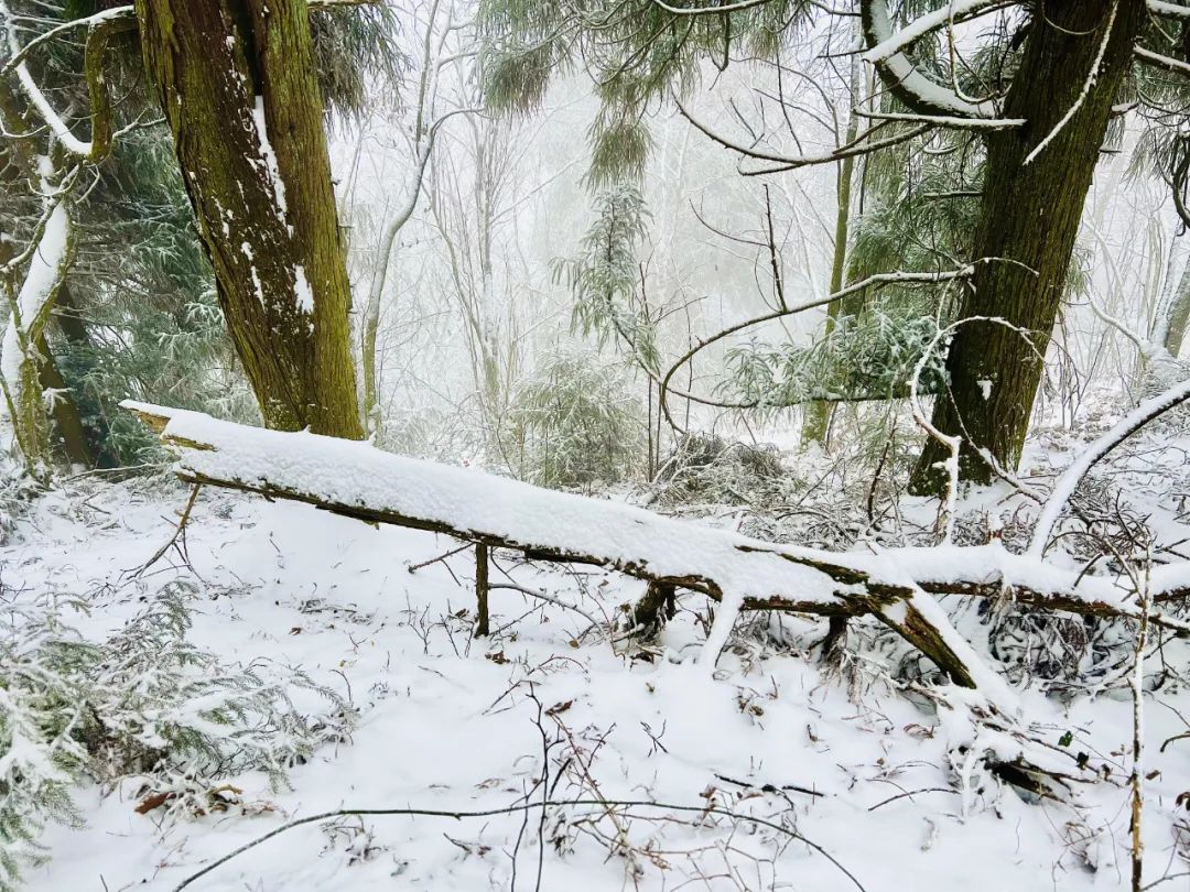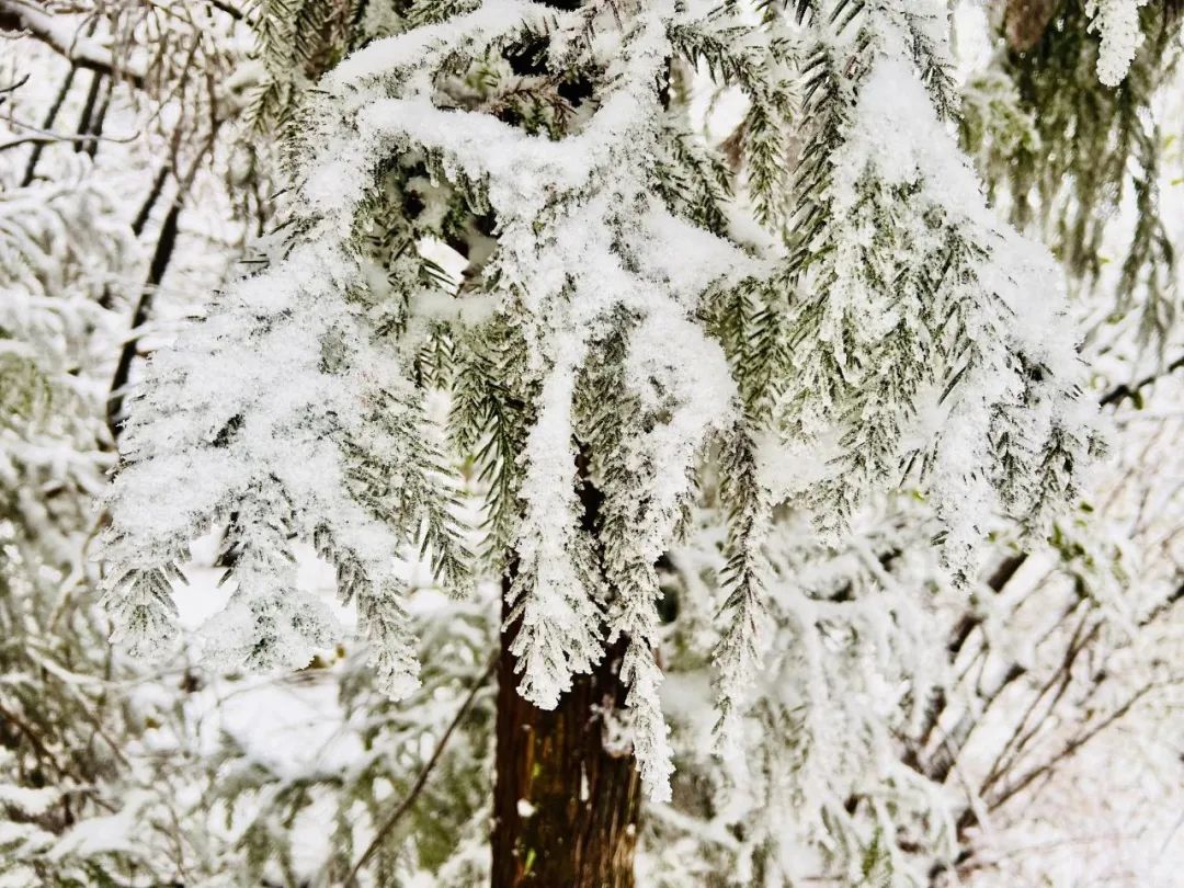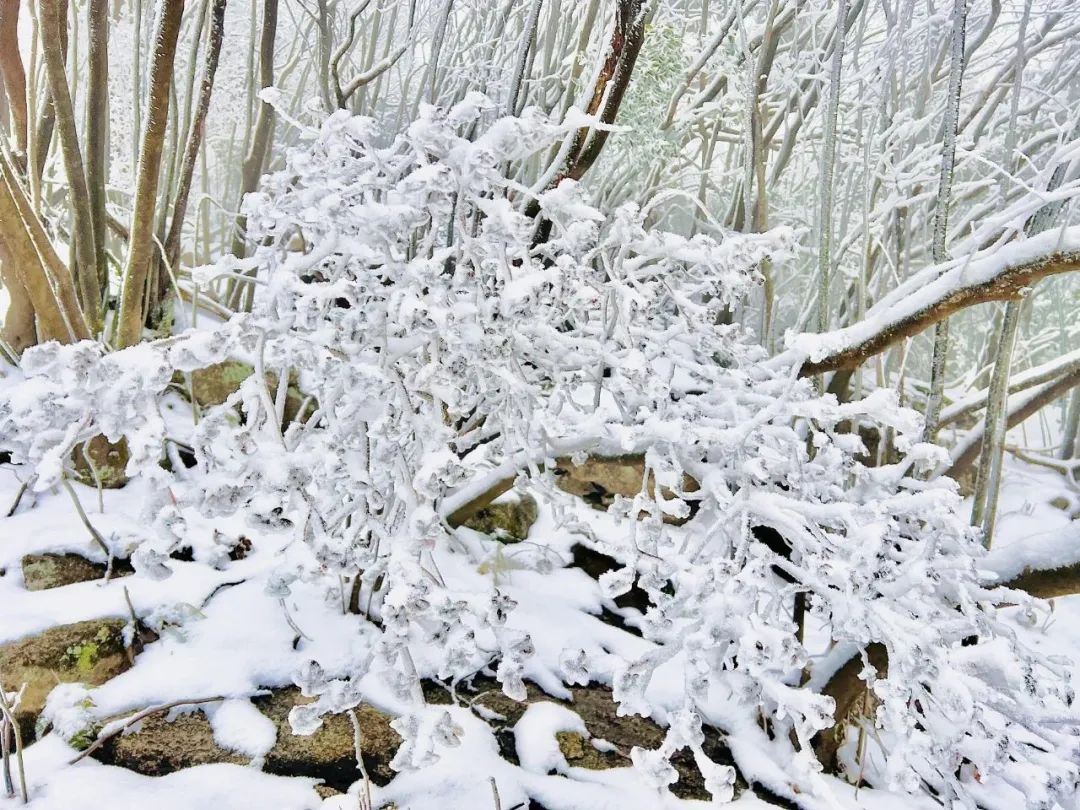 每年冬天,衡山白雪皑皑。清晨霜挂枝头,午后变成片片雪花飘落