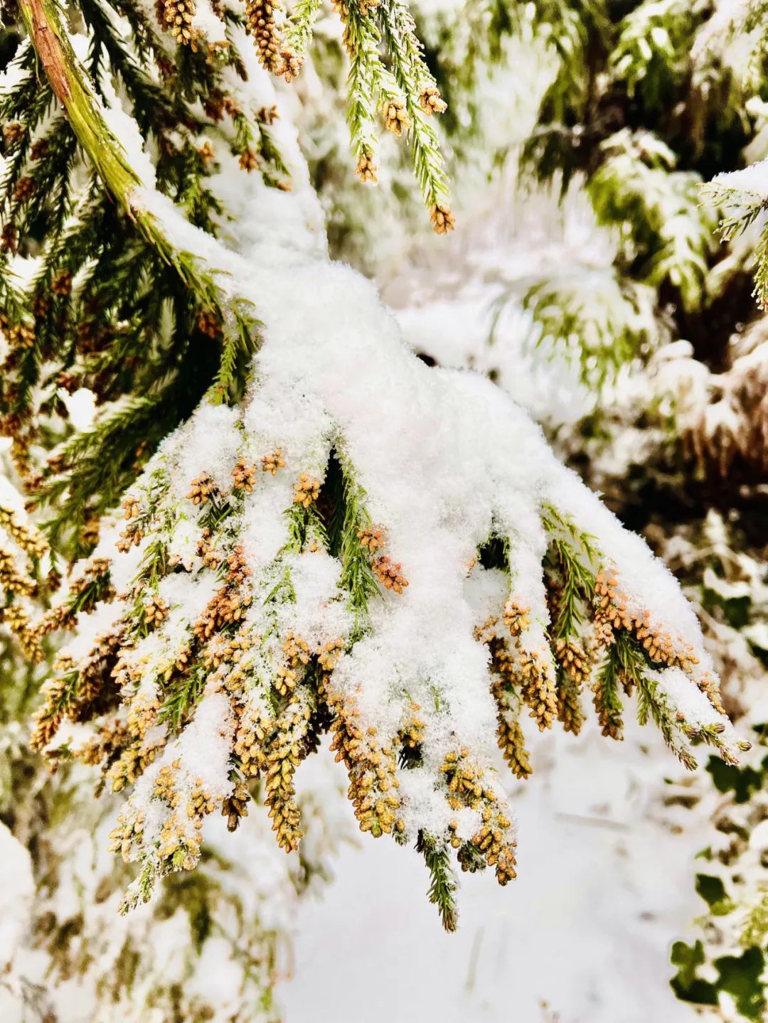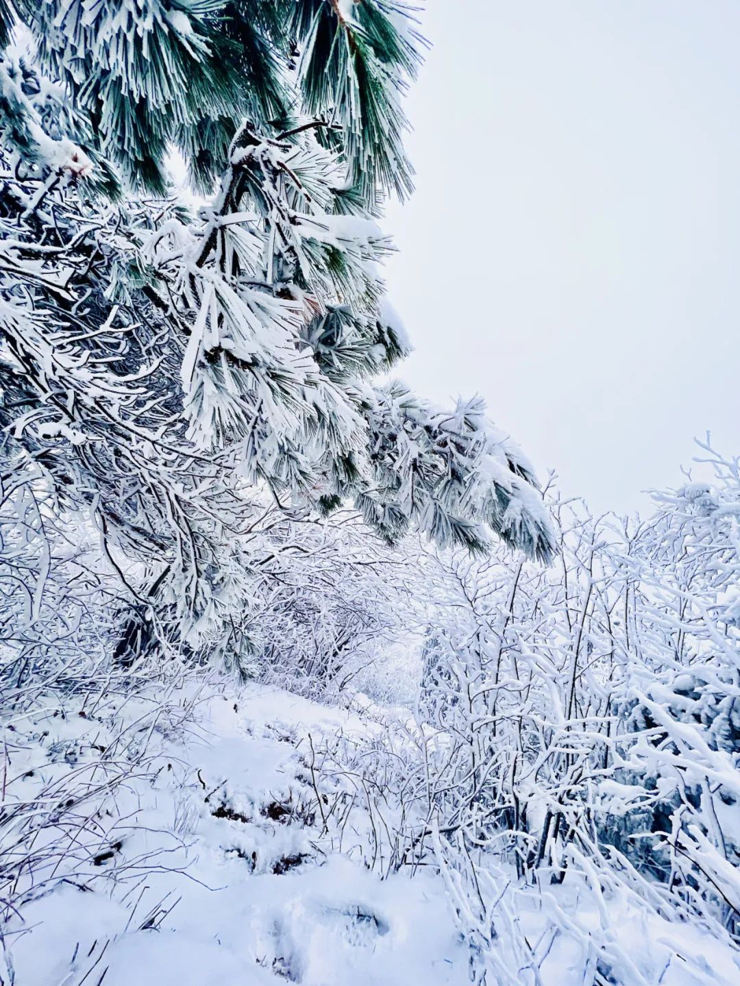 也有被冻住的果子,在皑皑白雪的衬托下,就像是南岳的雾凇仙女,为她增添了几分俏皮。