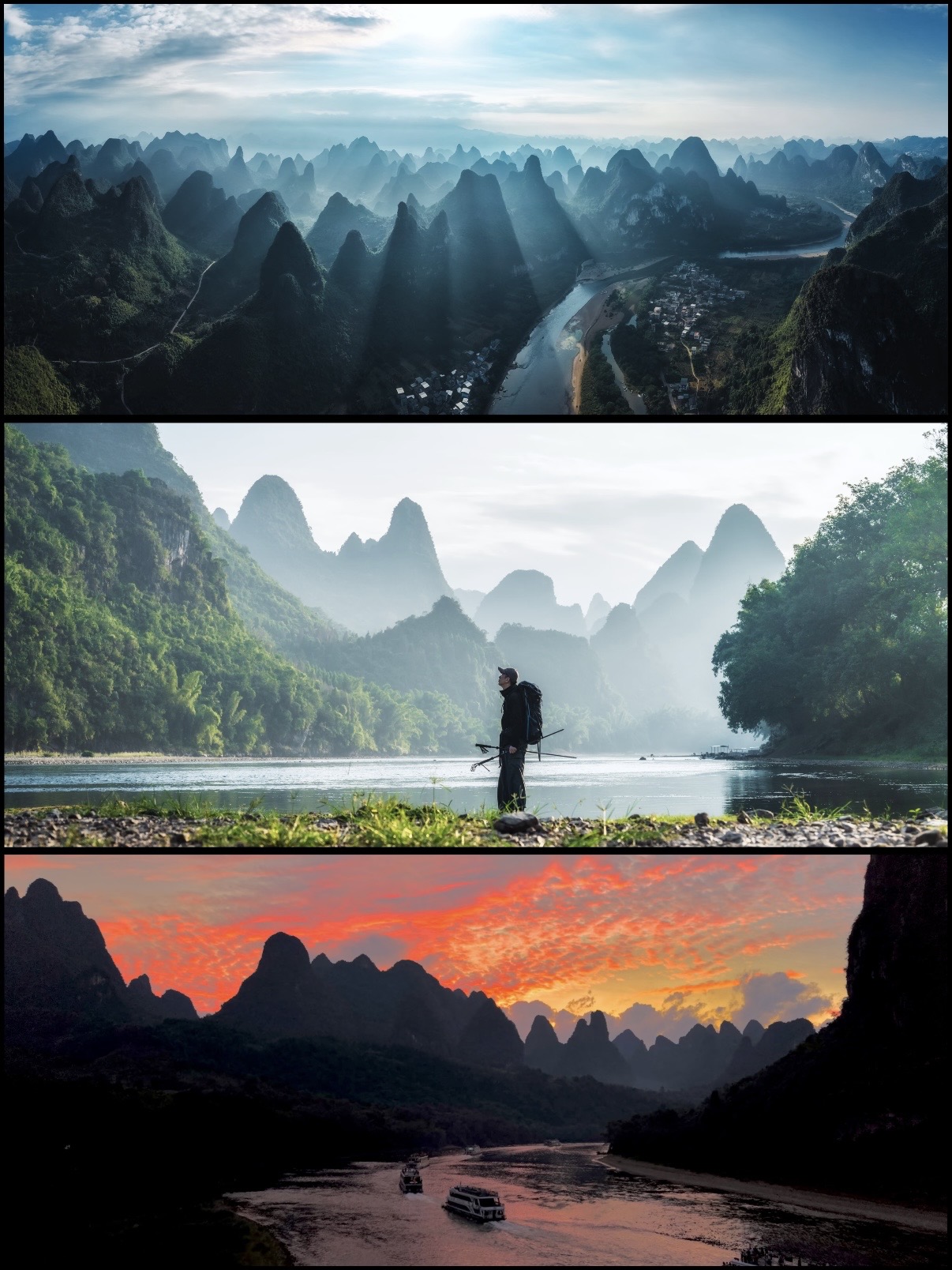 1、徒步中国十大经典徒步线路之一--徒步漓江18KM,打卡20元人民币背景,黄布倒影,九马画山