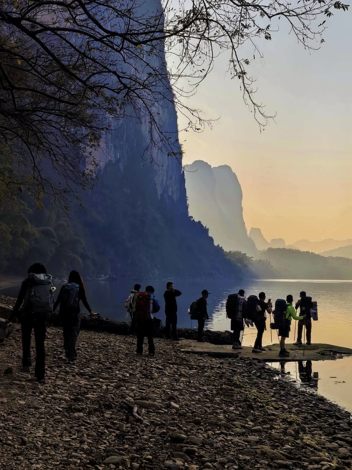 07:30 到达【杨堤码头】停车场,开始徒步【漓江】。