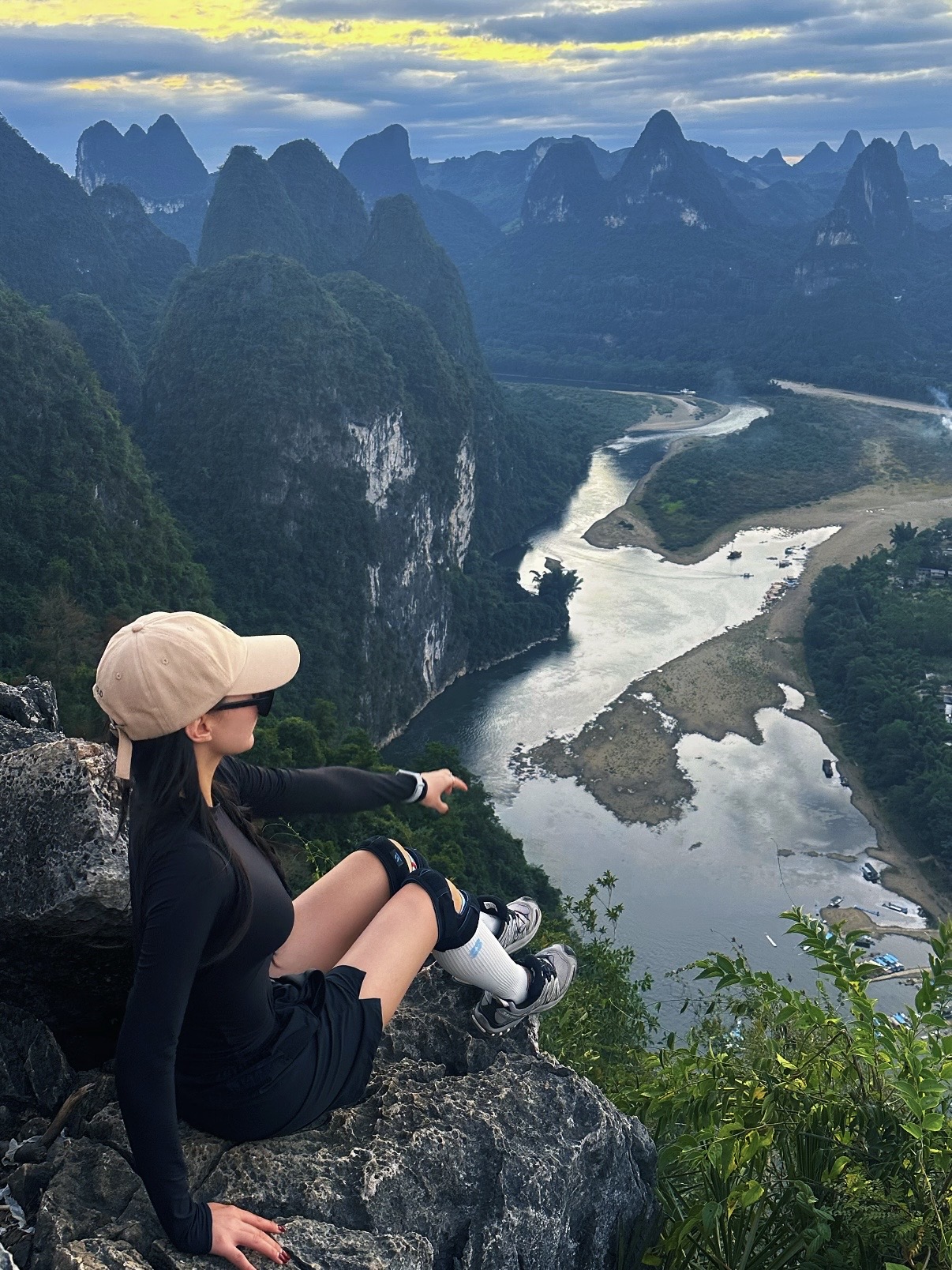 3、登【老寨山】,山顶可俯瞰兴坪古镇全貌和醉美漓江风景