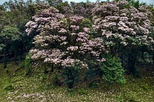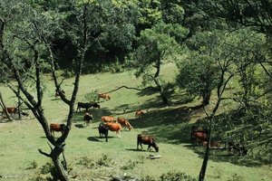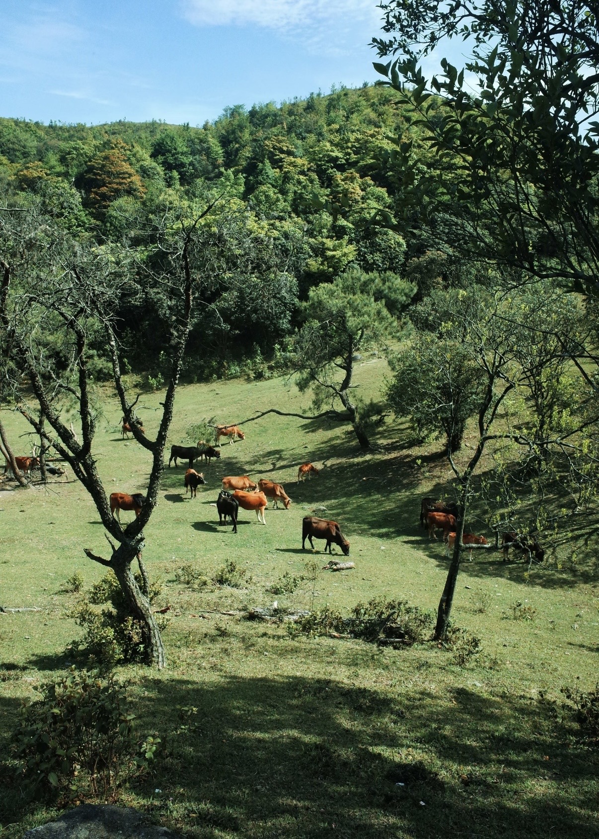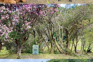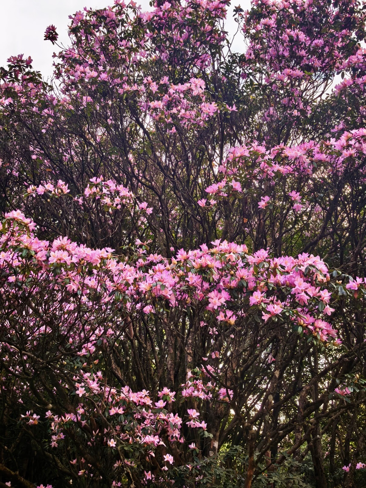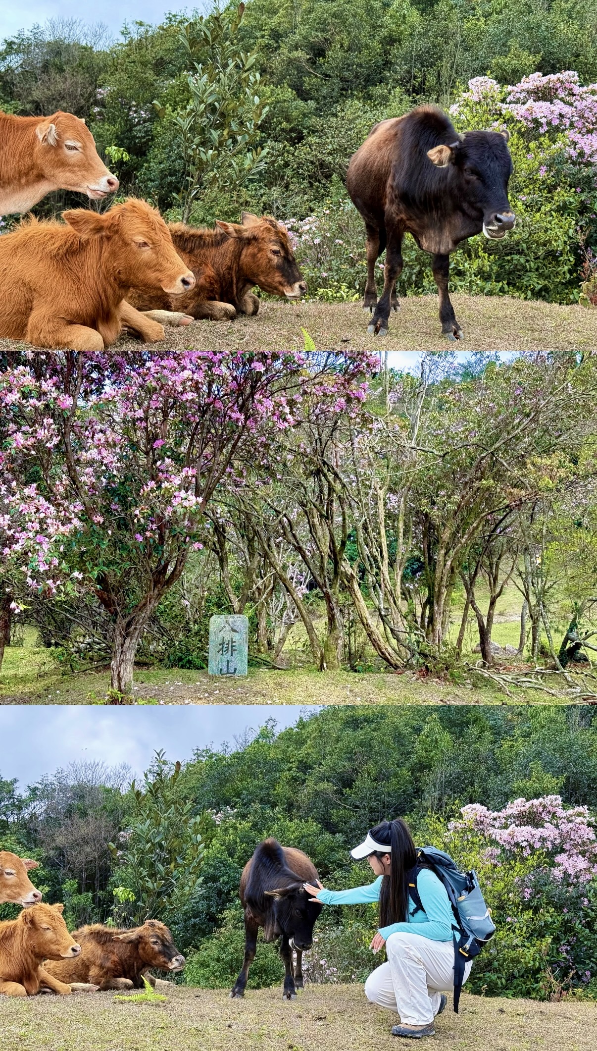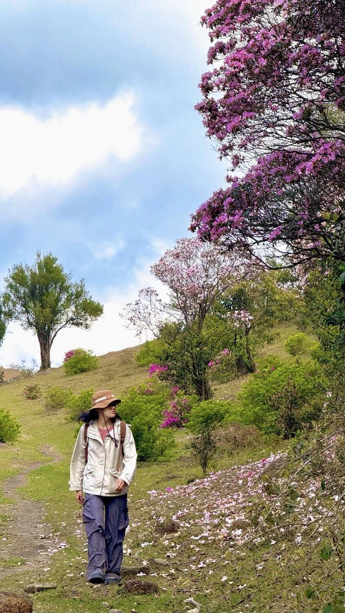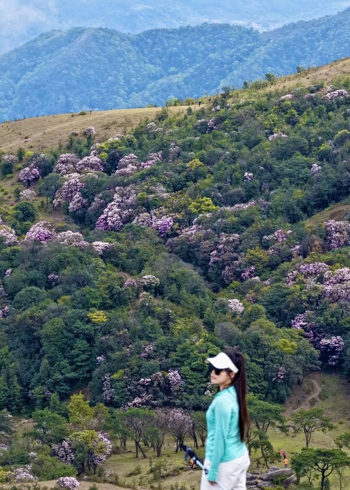 山顶“天堂顶”为天然高山草原,绿草如茵,农闲时牛群自由放牧。每年3–4月盛花期,漫山遍野开放云锦杜鹃(乔木型,百年古树),花色粉红至白色,面积超百亩,吸引大量游客