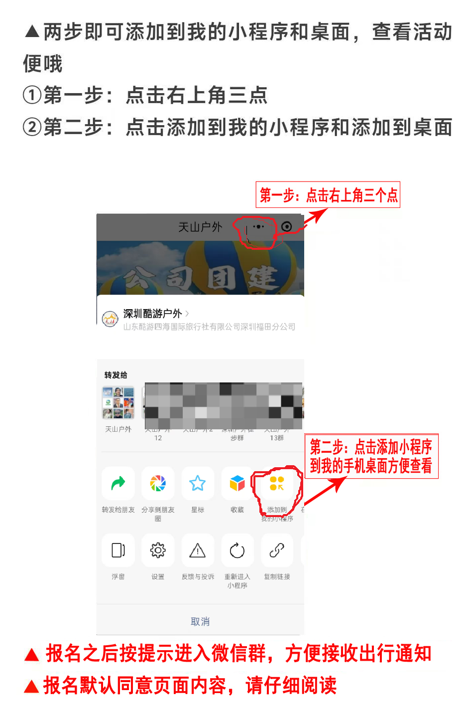 【深圳酷游户外】小程序报名 → 当天转发 → 等待出行当天发给天山(任意号,最多延迟1-2天)