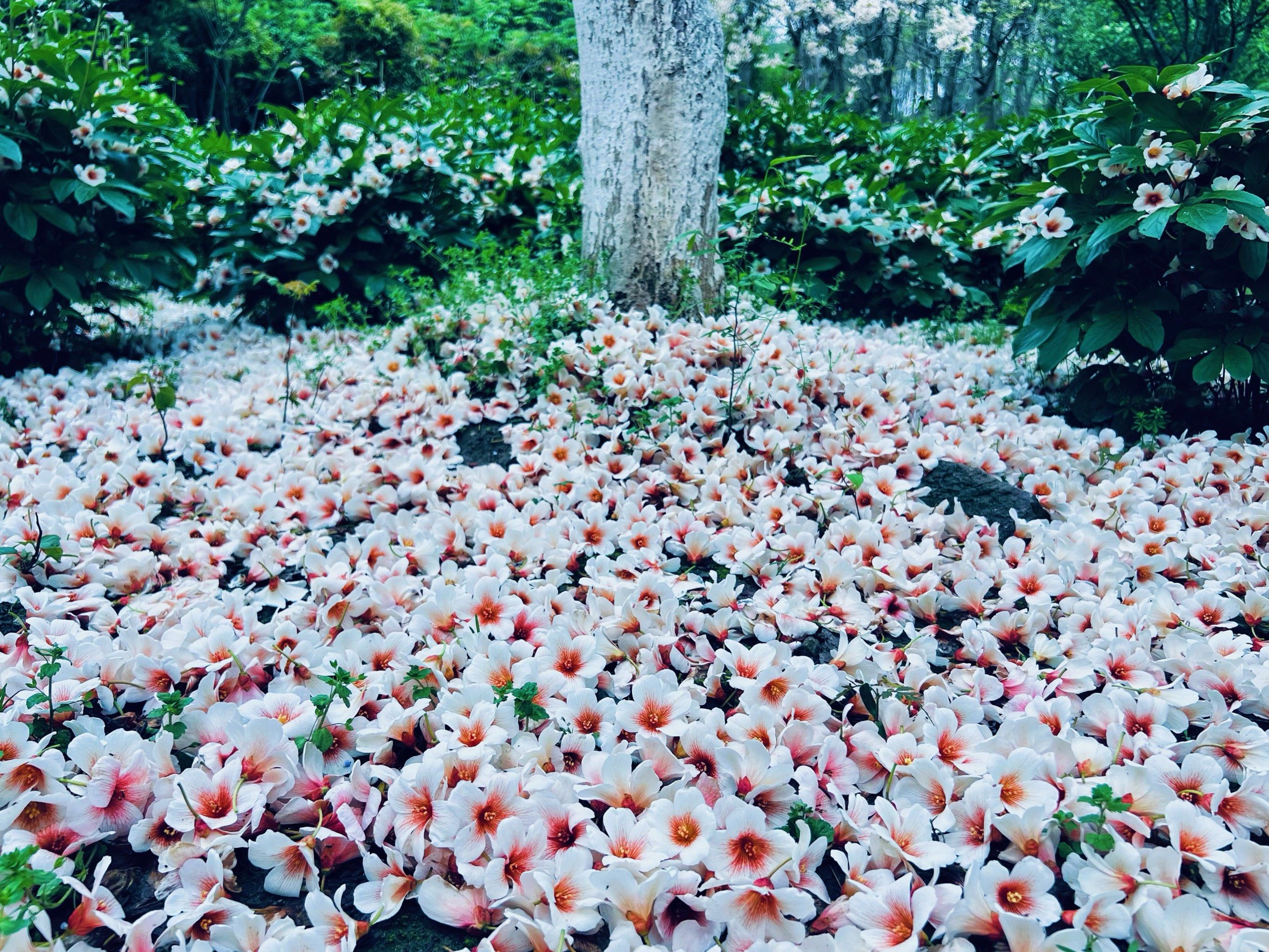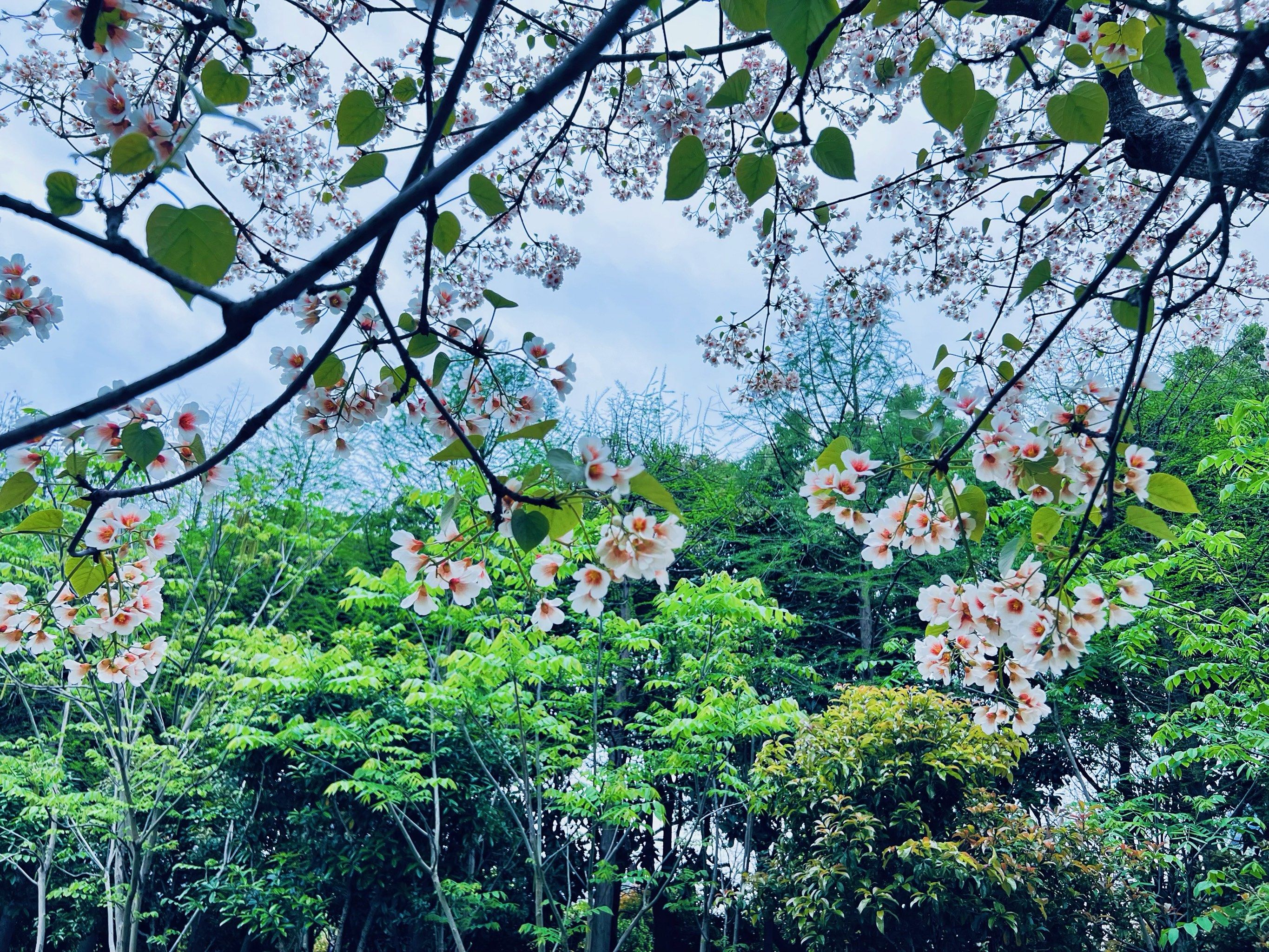 每年4月中旬至5月初,二龙山千余株油桐树盛放,满树洁白、风过落英,地上铺成花毯,是珠三角难得一见的春日“雪景”。步道穿林而过,抬头是繁花,脚下是花瓣,随手一拍都是森系大片,亲子同框温柔又出片。