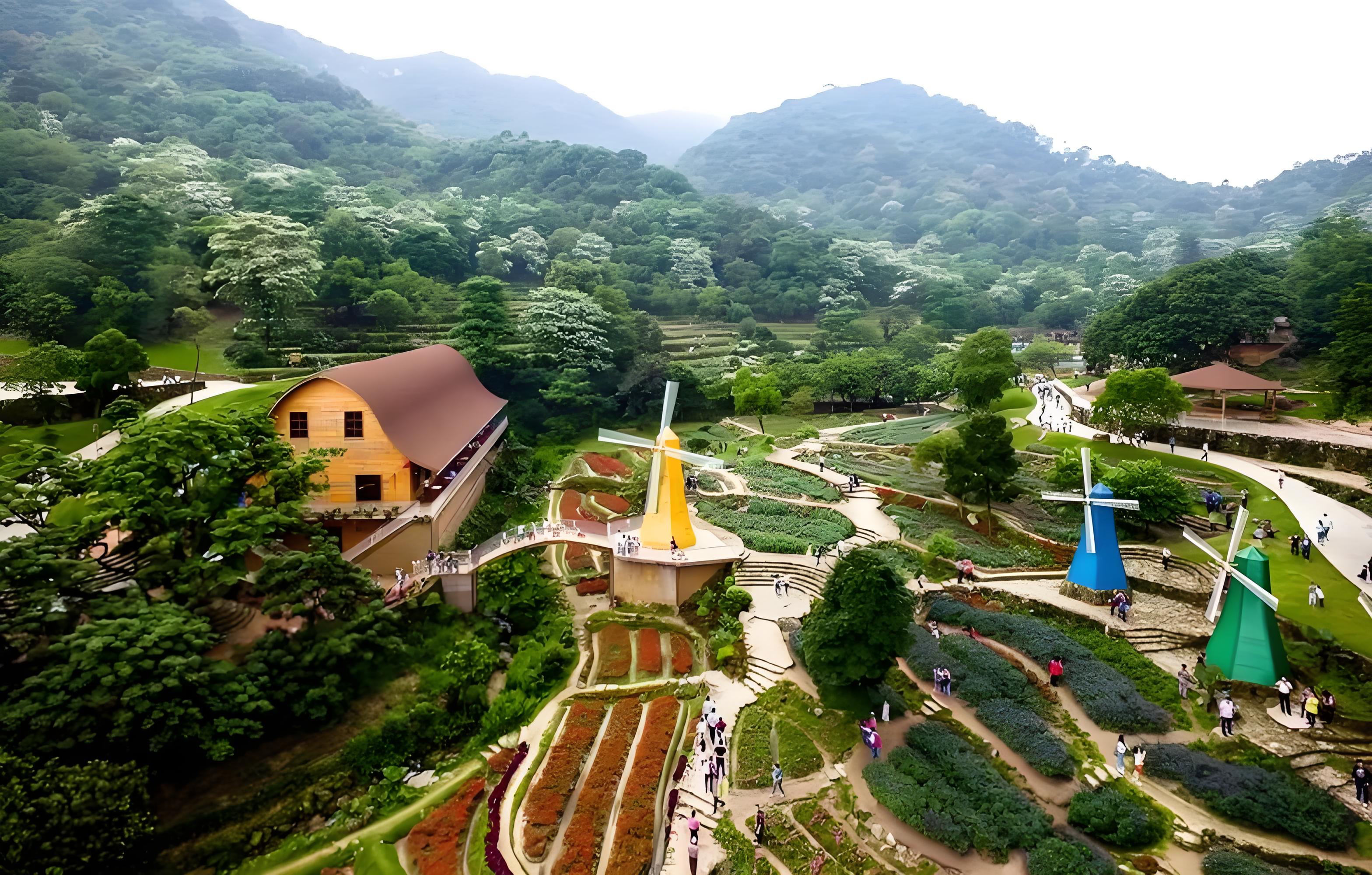 增城二龙山:万亩森林梯田花园旅游区位于北回归线最美丽的热带雨林,旅游区面积7000多亩,是一个以百年古树、千亩古梯田、十里古水蓊树、十里兰溪、200米落差瀑布、十里栈道、山涧瀑布水上乐园胜景,具有优美自然景色和二龙山神话传说,中国美景与欧美小镇风情相结合的现代健康休闲度假胜地。包括古梯田花海、珍稀桫椤园(国家一级保护的濒危植物)、花海餐厅、山顶爱情花园、婚纱摄影基地、特色城堡、风情休闲吧、古蓊树溪流、瀑布、森林等等。