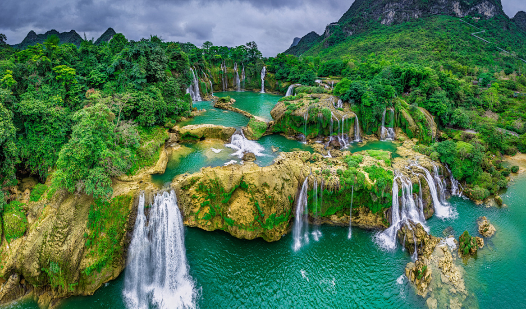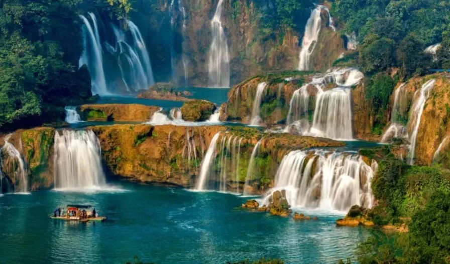 德天瀑布位于广西崇左市大新县硕龙镇德天村,中国与越南归春界河上游,瀑布发源于广西的“鹅泉”,与越南板约瀑布相连。
