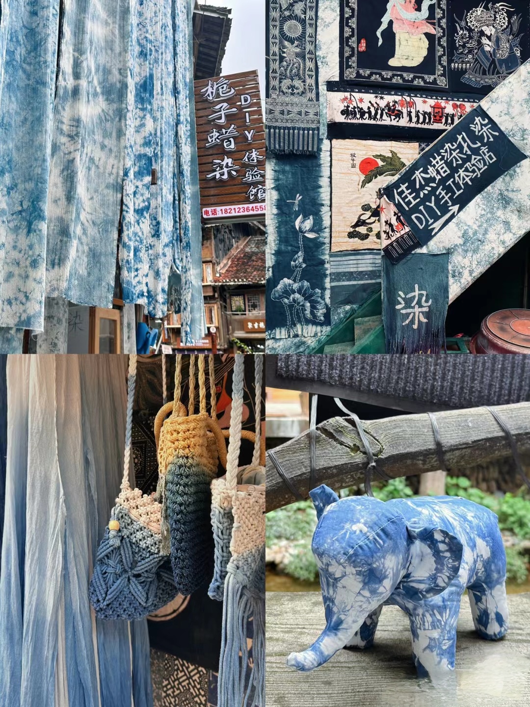 来到侗寨游玩,除了拍照吃吃喝喝,总还要带点纪念品回去吧,送自己送亲朋送闺蜜都可以,沿着河边走有不少扎染坊,可自由讲价。