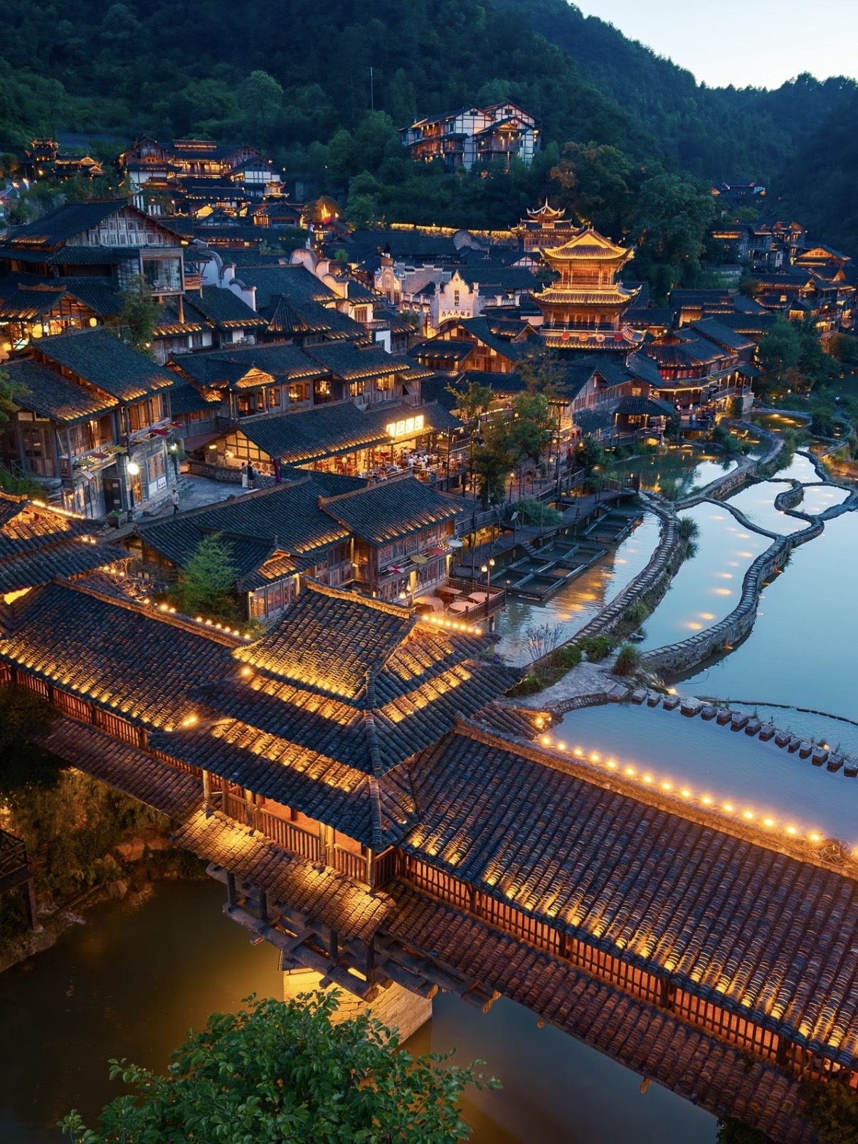 晚上自由组队品尝贵州特色美食,酸汤鱼火锅等,也可以xiao烤小饮一杯,感受小县城独特宁静。