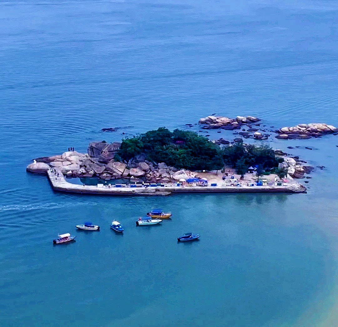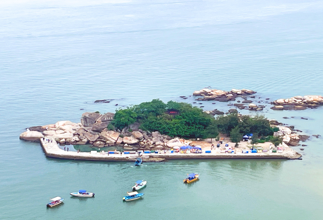 该岛依山傍海,风景秀丽怡人,岛上海水清澈蔚蓝,沙滩洁白晶莹,与海光山色相得益彰。站在美人礁的礁石上,让我们一起和美人鱼拍照吧。