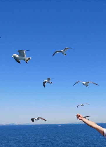 快艇在蓝色的波浪中起伏跌宕,时而溅起珍珠般晶莹的浪花,让我们伴着欢快的尖叫声,一起来畅游大海吧,观海鸥欢乐飞舞,听海鸥动听歌声。。。运气好的话还能和海鸥来一次亲密接触。