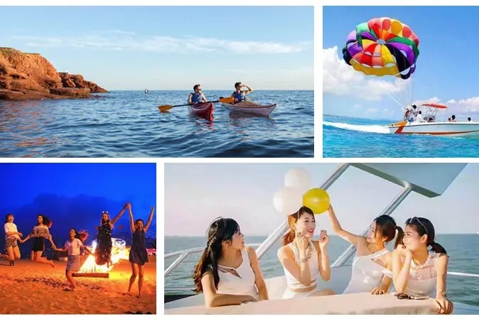 第一天:深圳---巽寮湾赶海公园----快艇出海上美人鱼岛、环游海鸥岛/龟山岛---皮划艇---沙滩自由活动--烧烤晚餐---篝火晚会----入住帐篷/酒店
