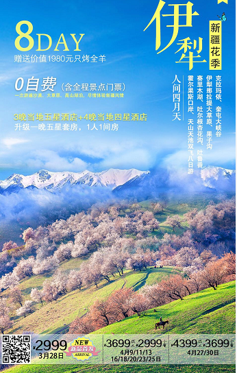 新疆伊犁杏花沟,魔鬼城,天山天池,大草原双飞2999起
