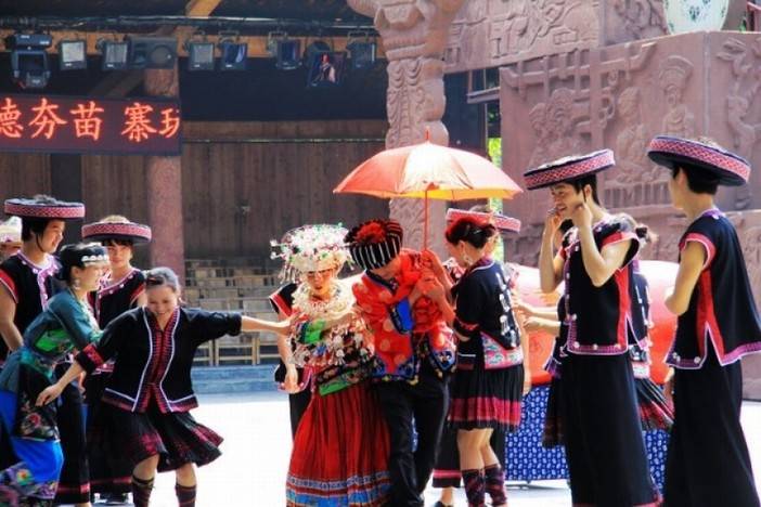 晚餐在凤凰有名的虹桥夜市解决,小吃一条街绝对让你食欲大增,举杯狂欢。晚上可以一起观看苗家大型歌舞晚会(自愿前往)。现代的凤凰人回顾了千年历史,将千年神秘习俗及悠远文化搬上舞台,为我们精心准备了一场视觉盛宴,场面壮观震撼。湘西神秘的巫毒文化,赶边边场(通过对歌找到心上人),苗家大鼓,湘西赶尸,苗家富有特色的婚礼。。。。。如果你是男的,勇敢走上去的话,还可以讨个苗家“媳妇”!