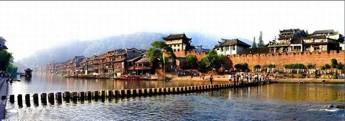 相传天方国(古印度)神鸟“菲尼克司”满五百岁后,集香木自焚。复从死灰中复生,鲜美异常,不再死。此鸟即中国百鸟之王凤凰也。凤凰古城,位于湖南省湘西土家族苗族自治州的西南部,因背依的青山酷似一只展翅欲飞的凤凰而得名,是一个以苗族、土家族为主的少数民族聚集地。