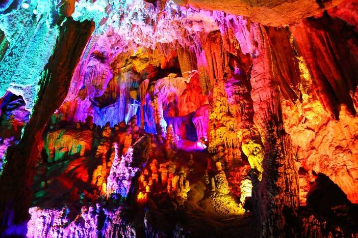 9:30游览银子岩景区(门票含,约90分钟),银子岩景区以“世界溶洞奇观,诗境家园典范”为核心品牌,集自然景观、人文景观于一体,旅游资源丰富,类型多样。自然景观主要有:洞穴景观、峰林与峰丛景观、山泉景观、田园风光等;景区共有景点58个,其中洞外景点30个,洞内景点28个。洞外的田园风光清幽、恬静,有俊秀的小青山、朝寨山点缀其间,清泉湖(又名银子湖)缓缓流过;洞内的钟乳石千姿百态、异彩纷呈;民间流传的宋朝英豪杨文广、抗法英雄陈嘉的传奇故事更增添了许多人文色彩。景区宛如一个巨大的天然盆景,四周群山环抱,千亩桃林错落其间,古寨依山而座,鸡犬相闻;田园风光,绝壁攀岩,湖光山色,美不胜收,有“诗境家园典范”之美称。银子岩贯穿十二座山峰,以“雄、奇、幽、美”著称。洞内幽幽森森、迂回曲折,汇集了不同地质年代发育生长的钟乳石,闪闪发光,像银子似钻石、晶莹剔透,洁白无瑕,在灯光的照射下,宛如夜空的银河倾斜而下,被岩溶专家誉为“世界溶洞奇观”,有游一银子岩,一世不缺钱的说法。
