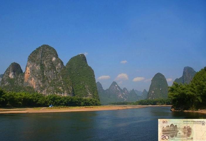 第二天 多人竹筏-银子岩-马岭古寨--兴坪20块人民币背景漓江--兴坪古镇--西街泡吧--住:阳朔县城 含早、中餐