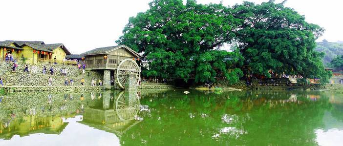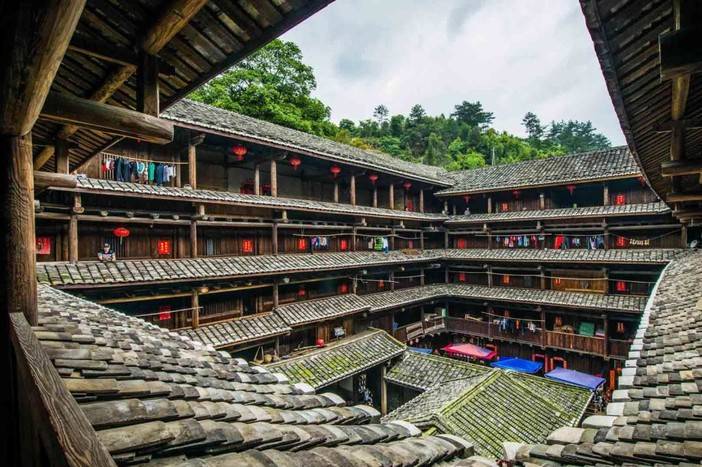 位于福建省南靖县梅林镇坎下村东部,距南靖县城54千米。建于1905-1909年,是建筑工艺最精美、保护最好的双环圆形土楼。2006年5月被列为全国重点文物保护单位。该楼为简氏家庭住宅,建于清宣统元年(1909年),坐北朝南,占地1384.7平方米,高4层,14.5米,每层34间,共136间。楼门上有楹联:“怀以德敦以上籍此修齐遵祖训,远而山近面水凭兹灵秀育人文”。怀远楼最引人注目之处在于内院核心位置的祖堂也就是家族子弟读书的地方“斯是室”。“斯是室”为精巧秀气“四架三间”上下堂建筑,占地190平方米,室内雕梁画栋,古朴天然,对联横匾,书卷气浓。