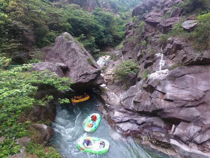 【天门悬廊】高,必须的天门悬廊最外侧处于漂流河道上方,离地垂直高度达500米,此高度是广东目前玻璃廊桥同类产品的4-5倍。游客登上悬廊,脚踏透明玻璃,一眼望到峡底,真正一步惊心,步步惊心。