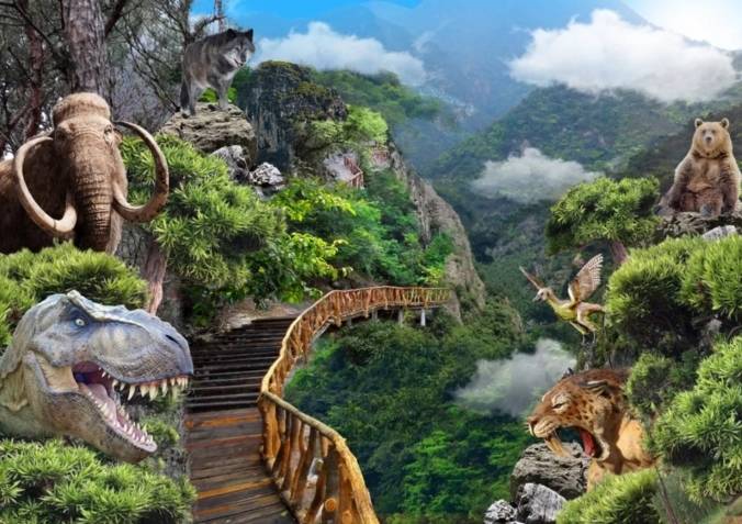 【好汉坡】位于峡谷脚下登山入口,到终点总台阶888级,周边都是松树林。沿路而上会陆续发现科技含量的,红外线高仿史前动物肢体动作配合独特的发声,每种动物都表现的惟妙惟肖实在让人真假难辨。
