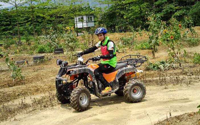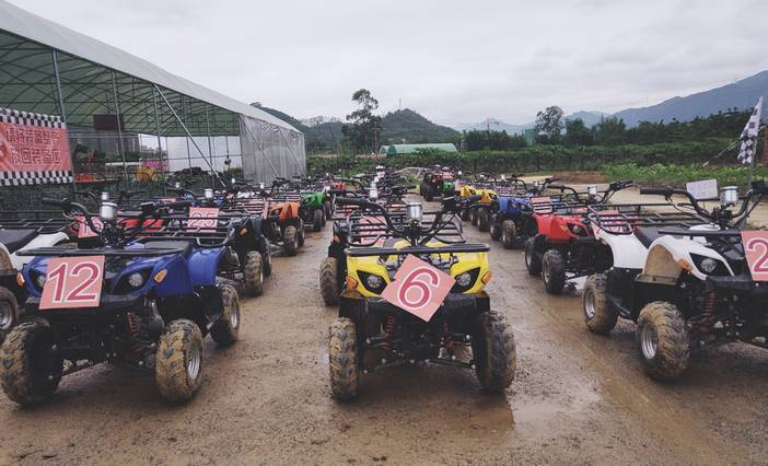 【5A花海越野车俱乐部】选用大排量沙滩越野车,拥有5公里专业赛事用道,设有连续多弧度弯道,发夹弯,V字斜坡, 竞速,漂移 。