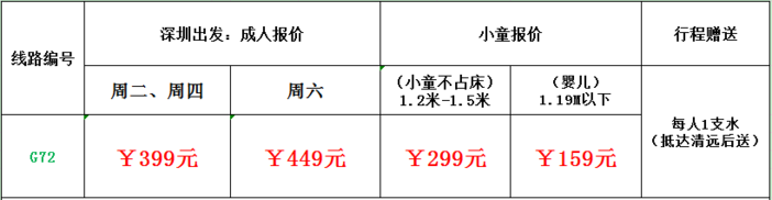 07:00-11:30 集合完毕后,出发清远(全程高速约3小时)