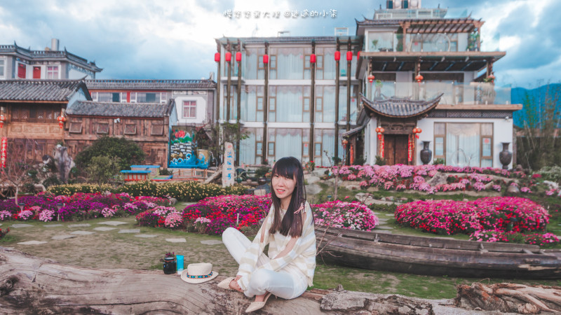 客栈外随意捡很多花瓣,给保护我不受紫外线损伤的防晒拍个写真: