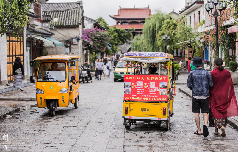 随着大量游客的涌入,车辆也开始多了起来,这种“旅游小包车”也成了大理一道独特的风景线。