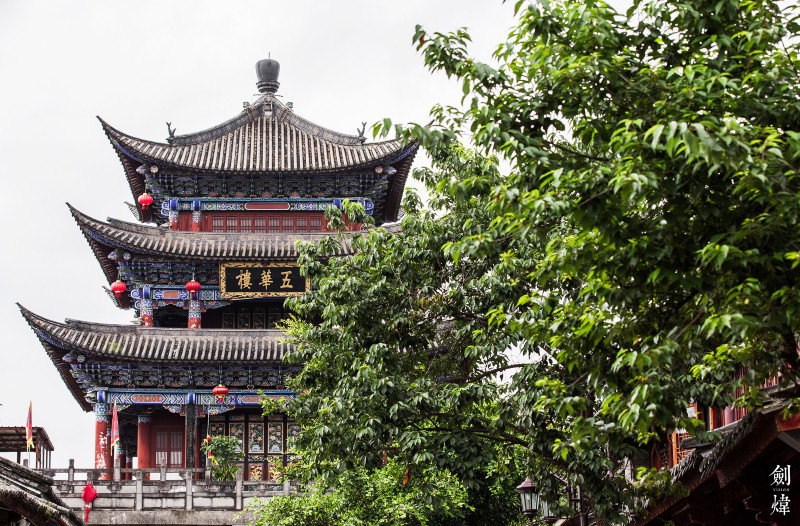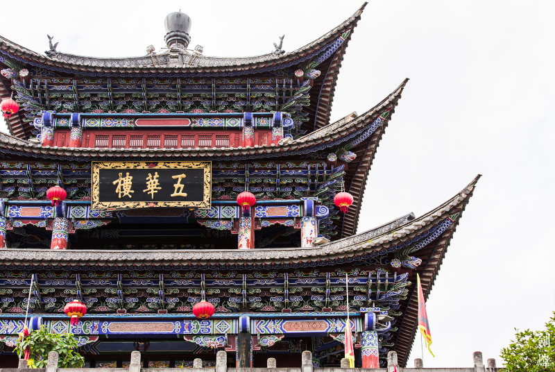 从人民路拐入复兴路,一座极具特色的古建筑出现在你的眼前,这就是五华楼,历经了千年沧桑,见证了大理的历史兴衰。来到五华楼就意味着你已经来到了古城的中央,五华楼是古城的标志性建筑,是南诏皇帝宴请宾客的重要场所,现在可以免费登上五华楼,古城的全景一览无遗,还可以远望苍山和洱海,是观景的绝佳之地。