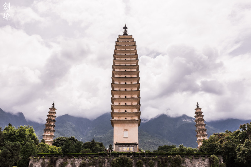一进入景区的大门,这壮观的一幕让人震撼,三座巍峨的佛塔伫立在我们面前,这便是有名的崇圣寺三塔,三座塔鼎足而立,给人一种视觉上的冲击,人们纷纷站在三塔前与其合影留念,突然,只听到旁边的导游说道:“三塔的作用是永镇山川,所以属龙和属蛇的朋友们不宜与其合影!”听到这番话,原本想合影的我瞬间打住了这个念头,大家可记住了,如果你的生肖是龙或蛇,合影需谨慎,哈!