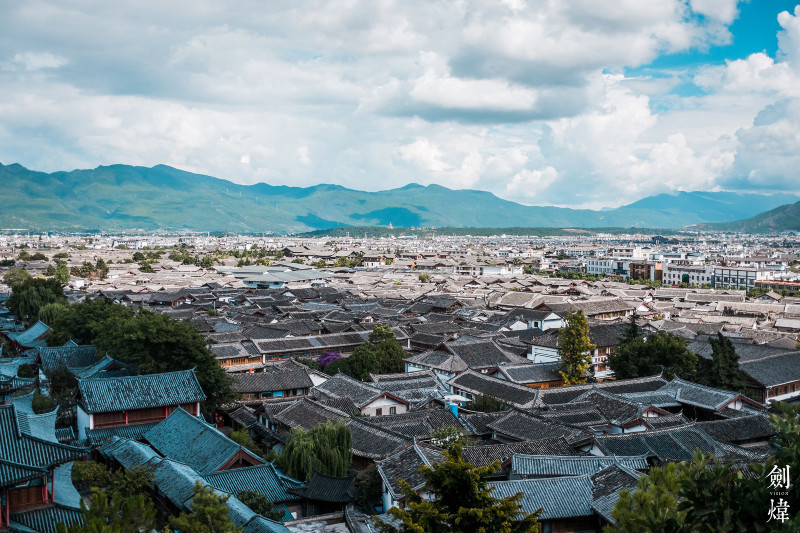 木府的后面就是狮子山,山上有个万古楼,在楼上可以看到古城全景,50元的门票我感觉没必要,因为在山上有很多茶馆,花5块钱就能让你拍个够。