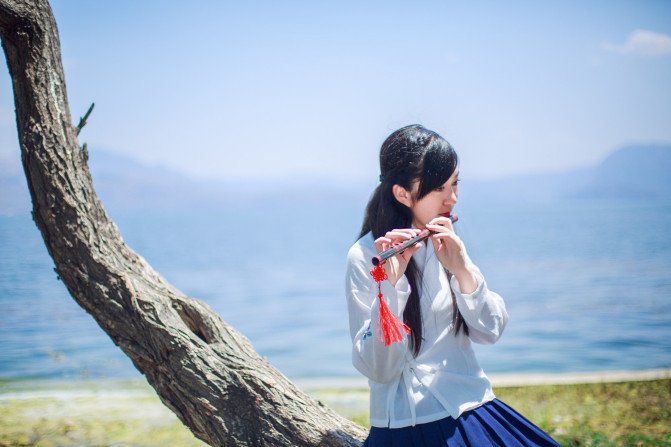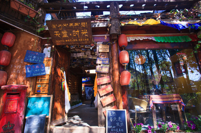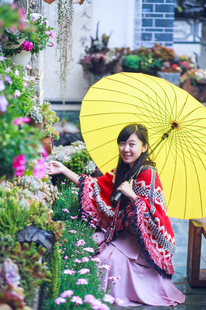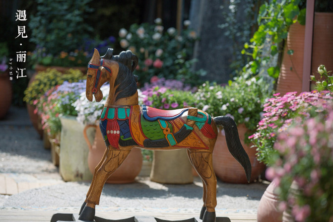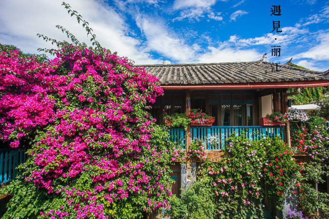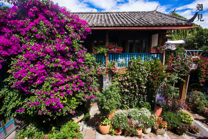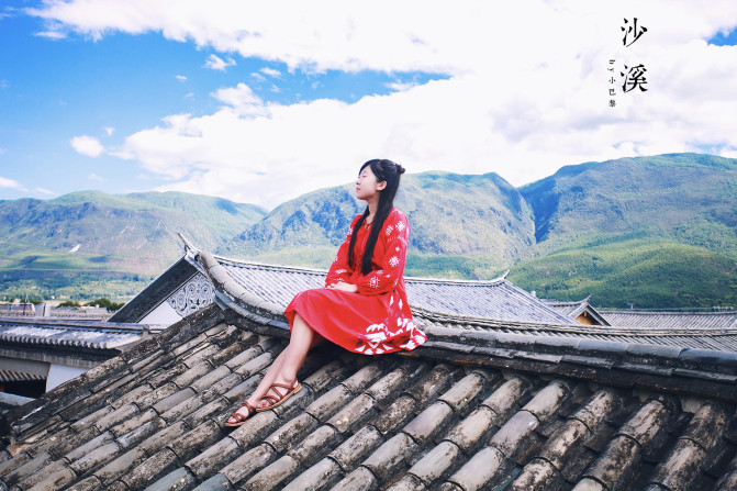 天堂角落,有纳西的元素,其实大红+宝蓝,最好有一点民族风元素的裙子去拍照会非常好看。