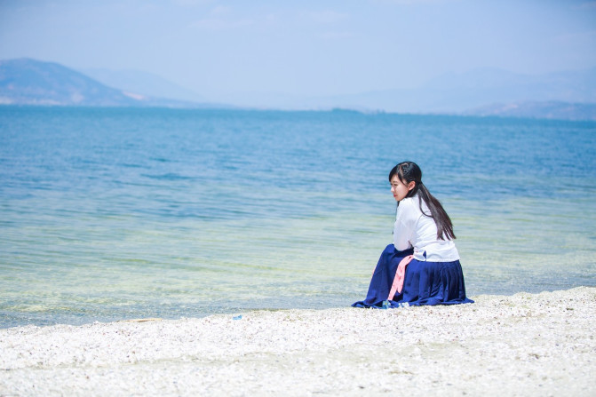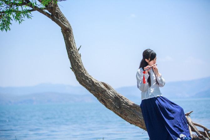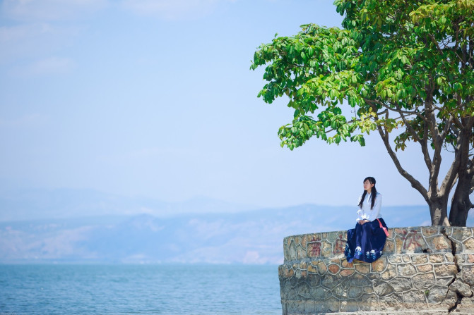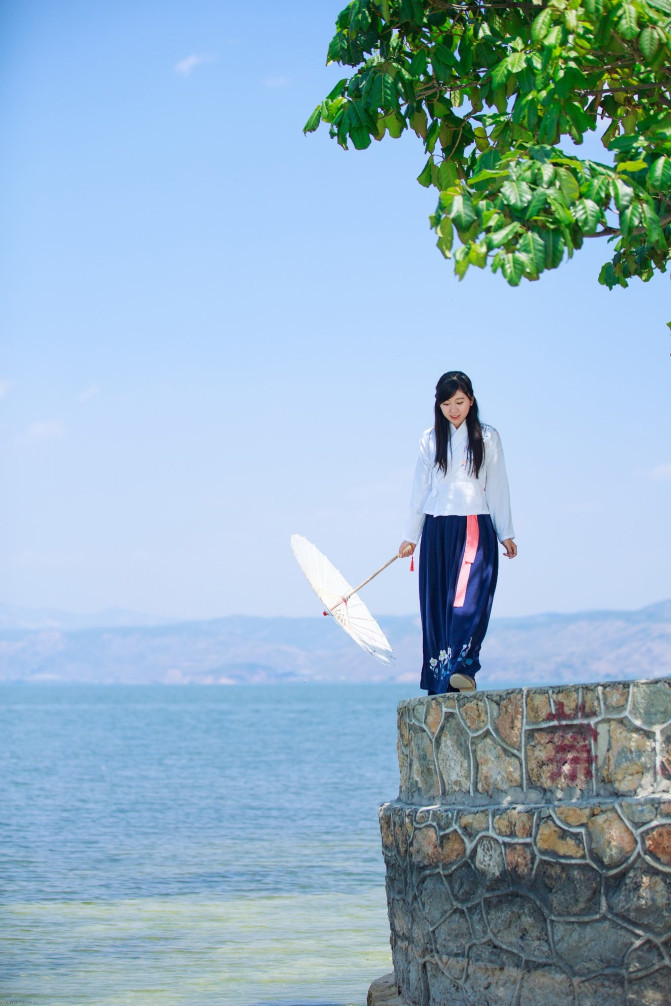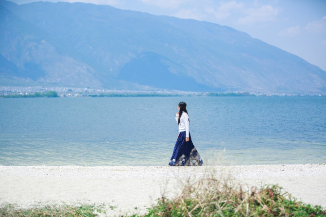 因为觉得白裙过于单调,在洱海边穿白色长裙拍照的人真的太多了。