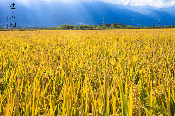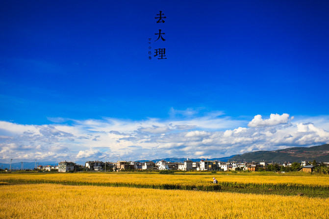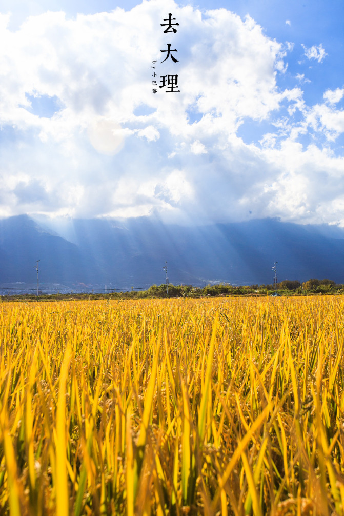 洱海以西,都叫环海西路,从才村到喜洲的路上,还有这个季节大理独有的色彩!这个季节的大理,是收获的季节,是秋天的色彩。远处,有白族民居。
