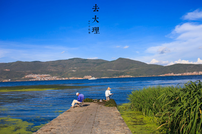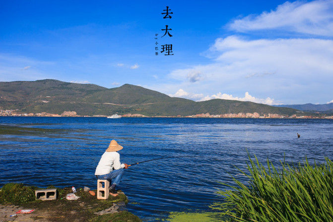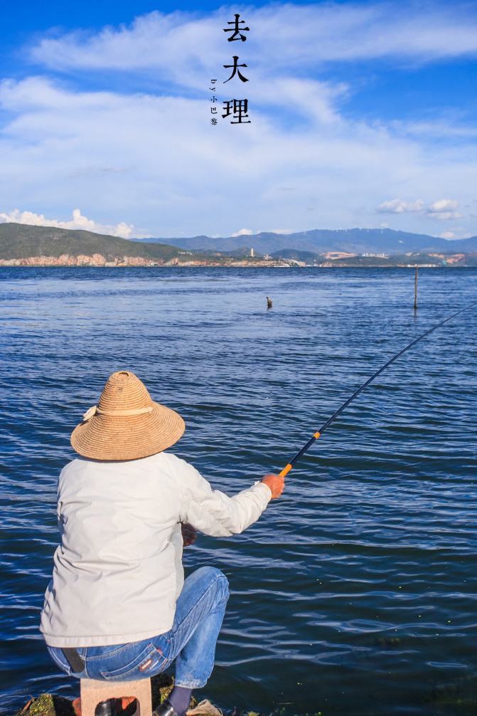 沿着环海西路,一路骑行,不知不觉又走到洱海边。我们去洱海边拍照,当地人在洱海边垂钓。