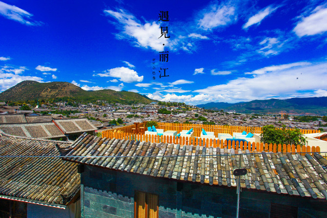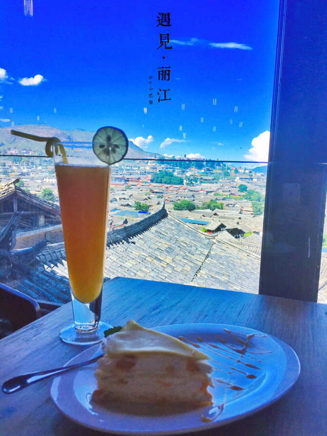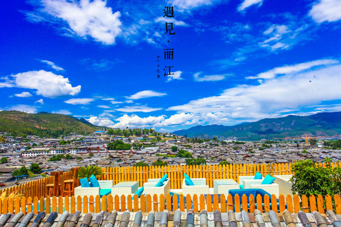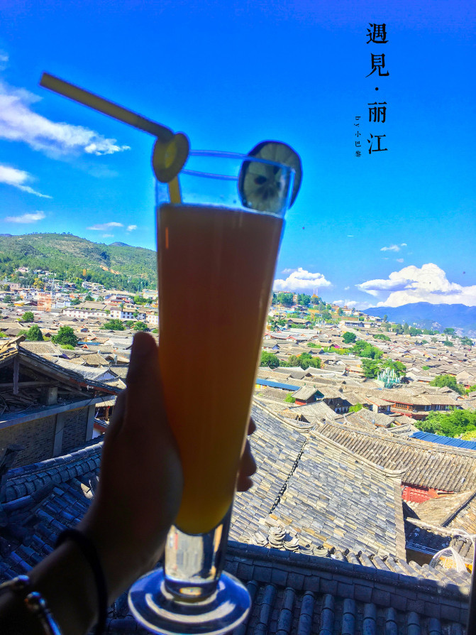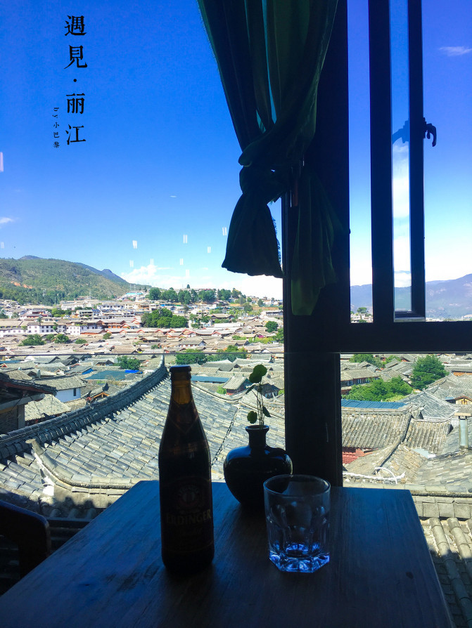 三楼还有露天观景台,这一刻,我爱这蓝天白云下的丽江古城。